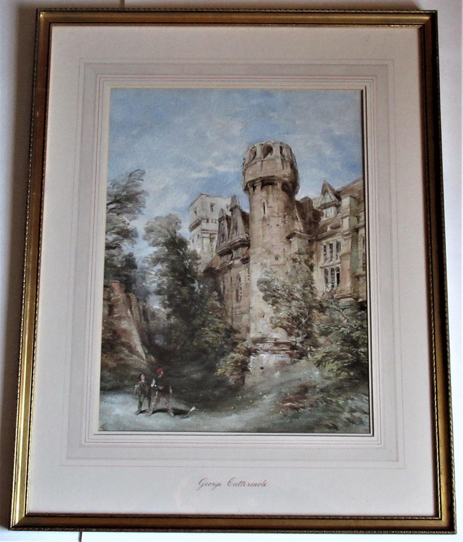 George Cattermole Robin Hood & Nottingham Castle, Large Watercolour, Framed