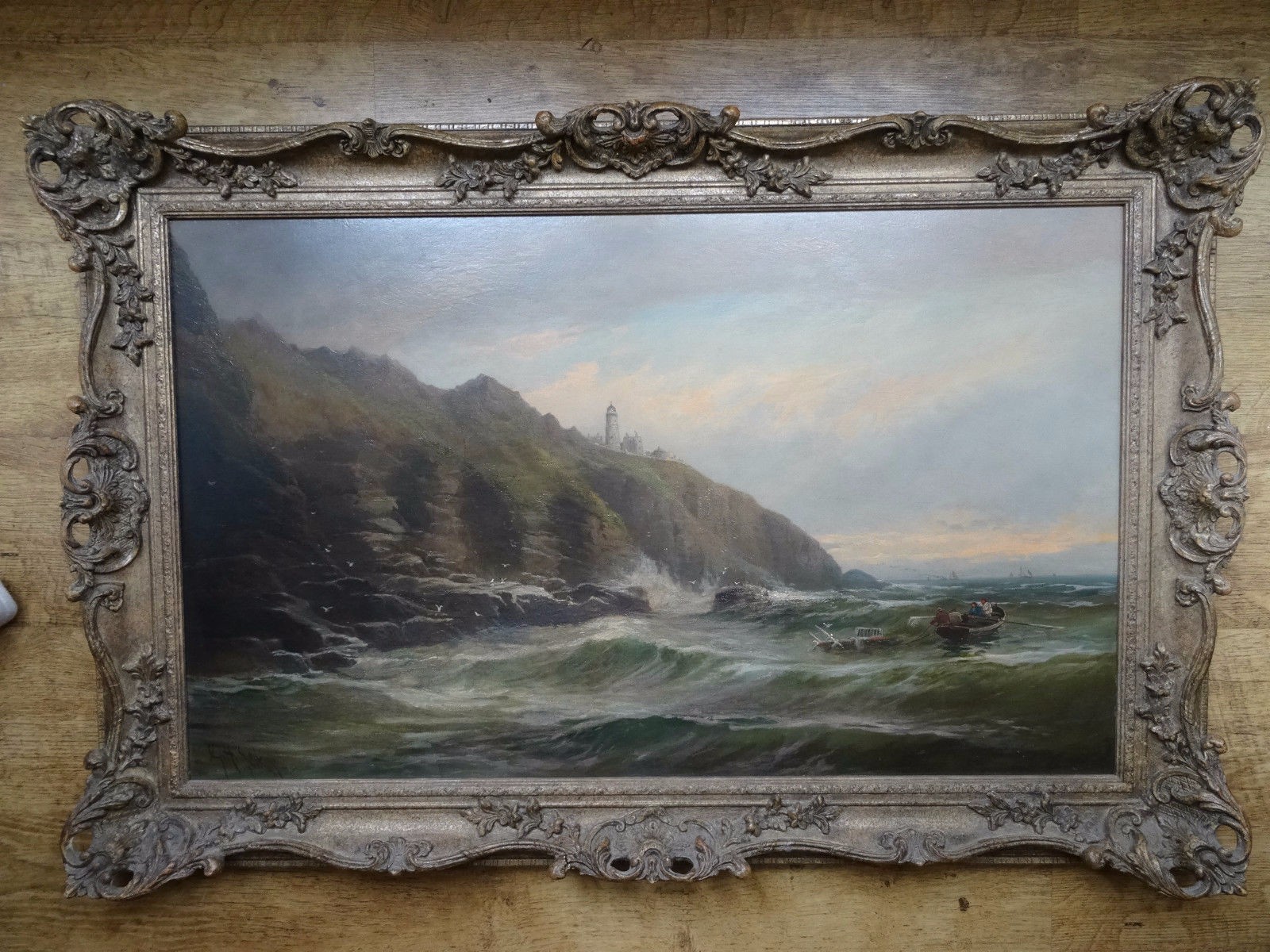 George H Jenkins (1843-1914) Large Seascape Oil Painting of Point Robert, Sark
