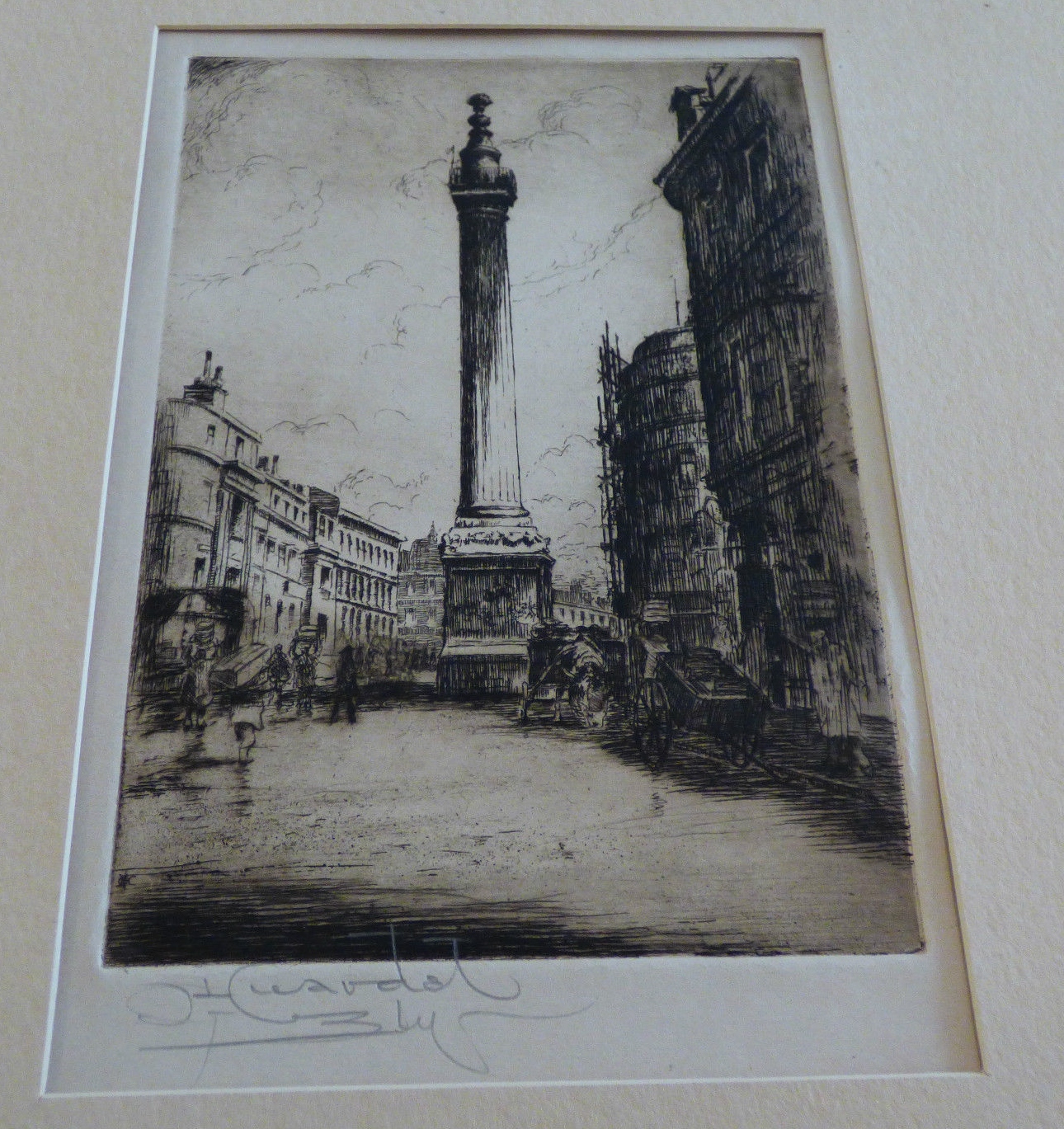 George Huardel-Bly, Pencil Signed Etching, the Monument, London. C.1900