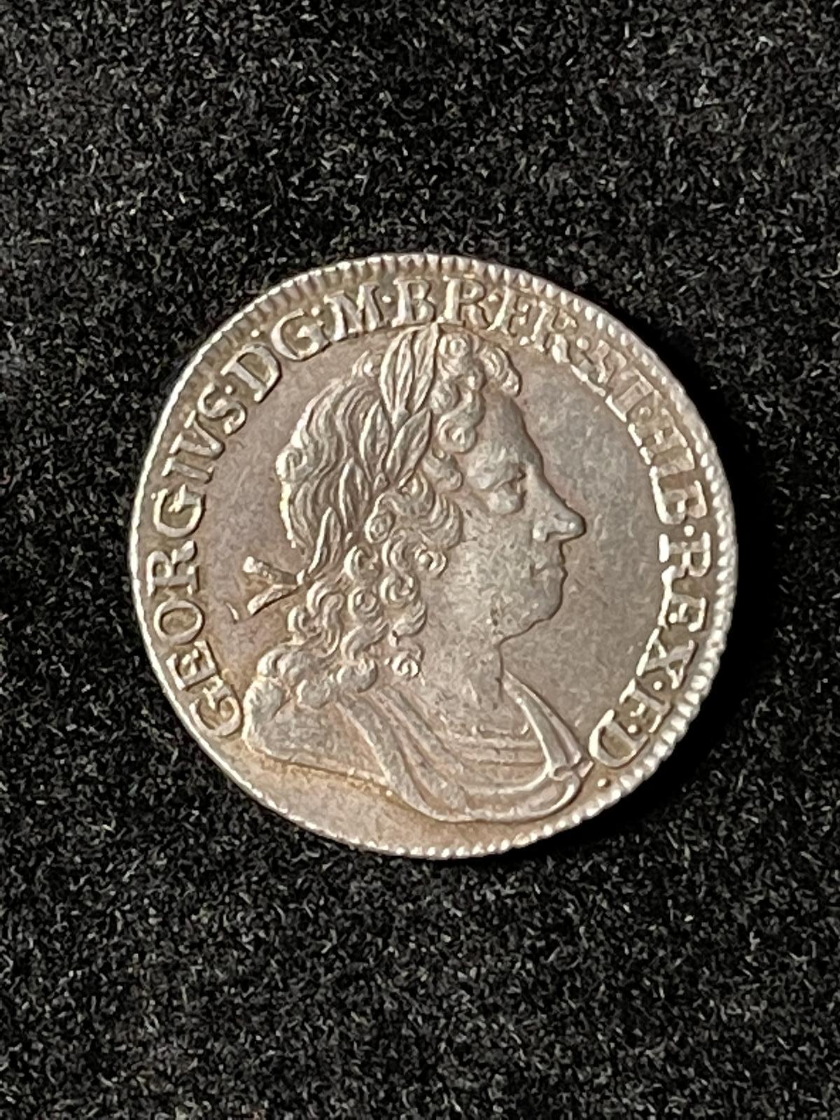 George I Shilling 1723 SSC in Angles, First Bust, Better Than Extremely Fine