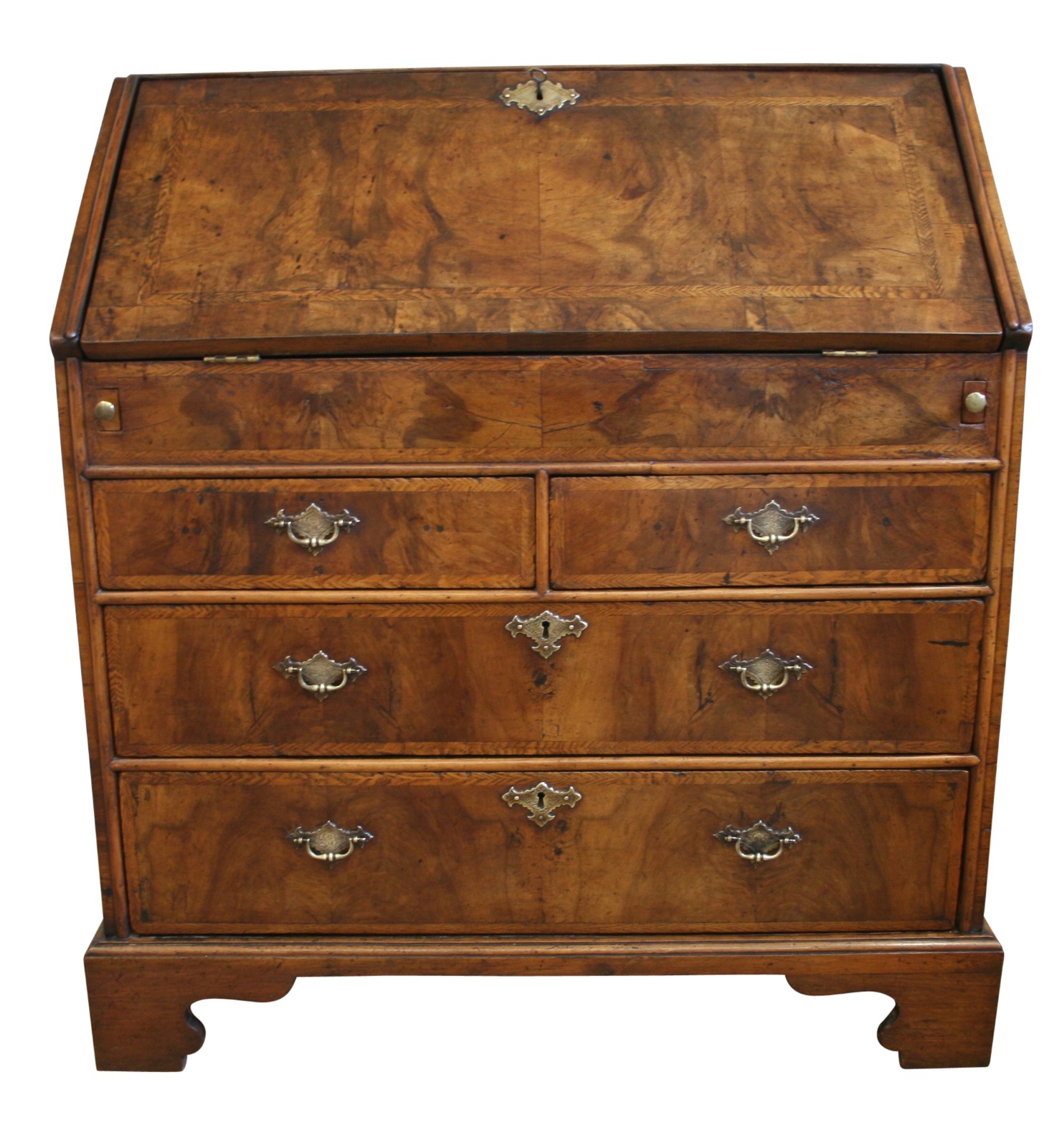 George I Walnut Bureau with Feathered Banding in Ash (1 of 5)