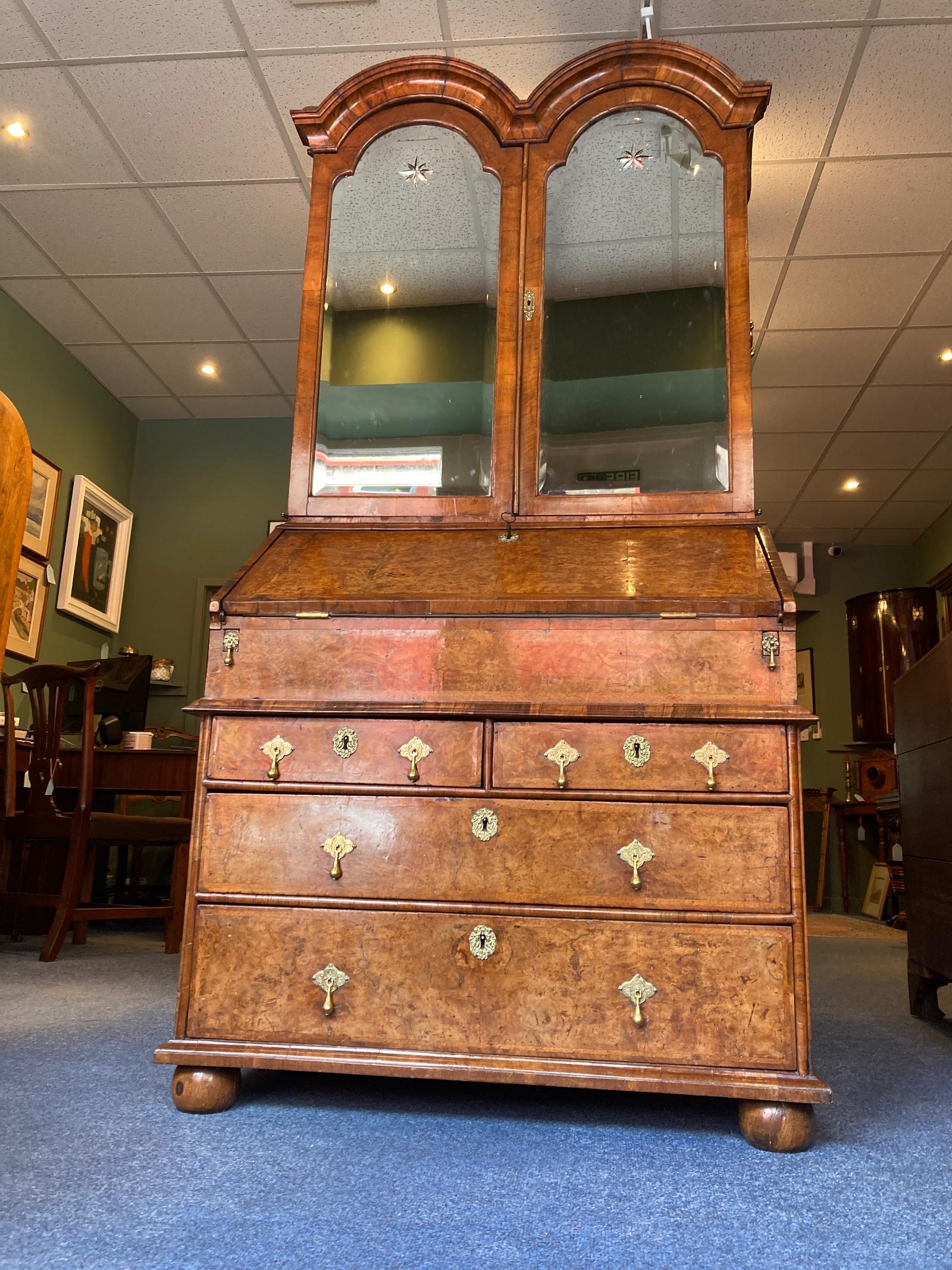 George I Walnut Double Dome Bureau Bookcase