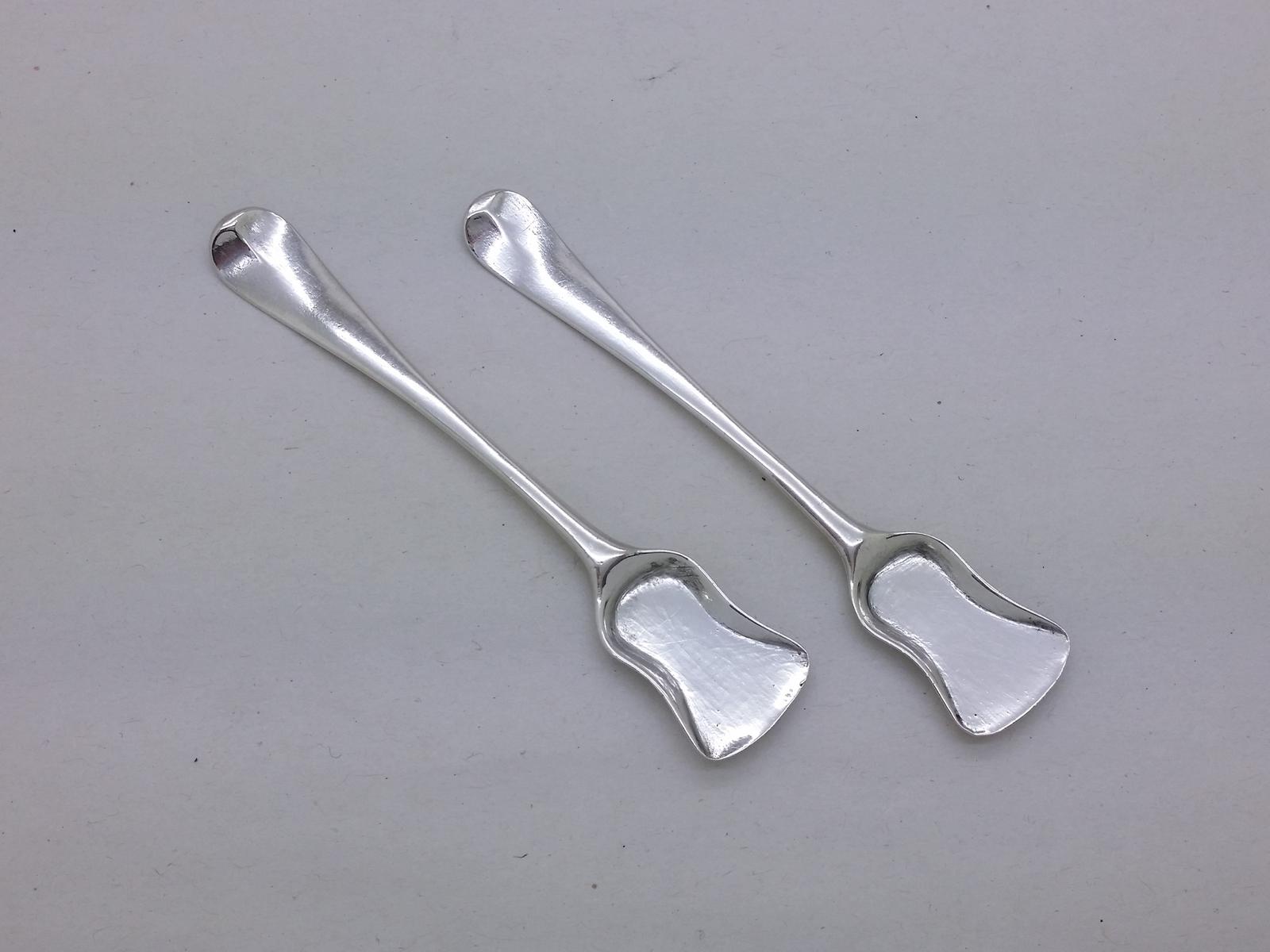 George II c.1750 Pair of Sterling Silver Shovel Condiment Spoons Hallmarked
