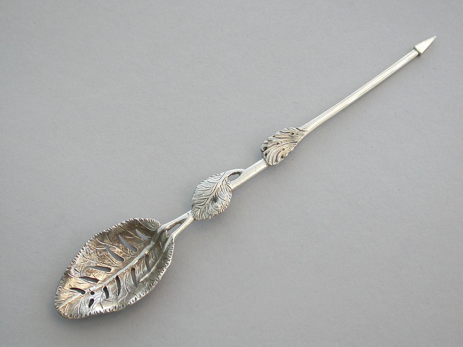George II Cast Silver Naturalistic Leaf Pattern Mote Spoon - Unmarked c.1750 - Possibly by Francis Harache