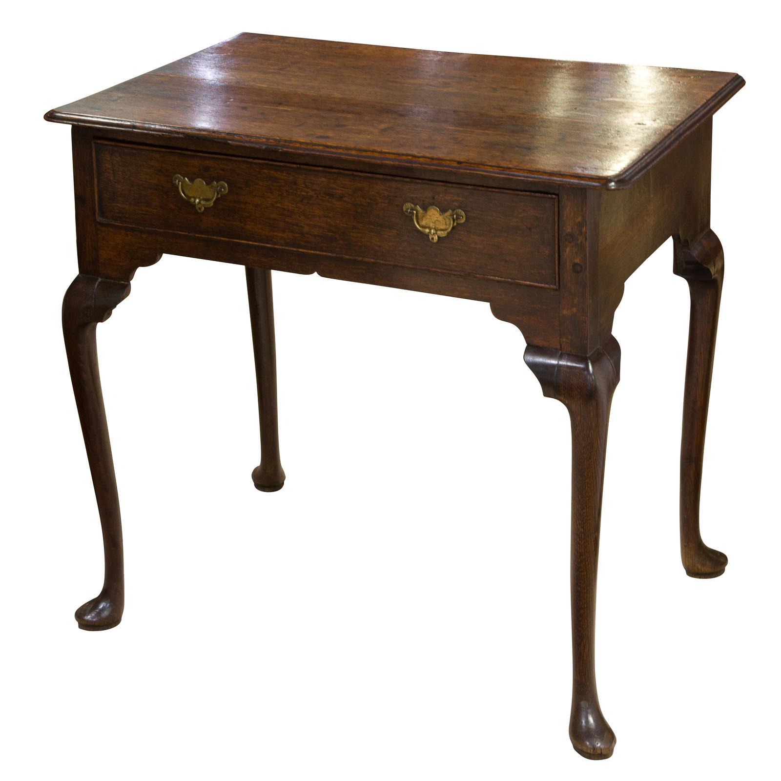 George II Oak Single Drawer Side Table with Original Brass Handles