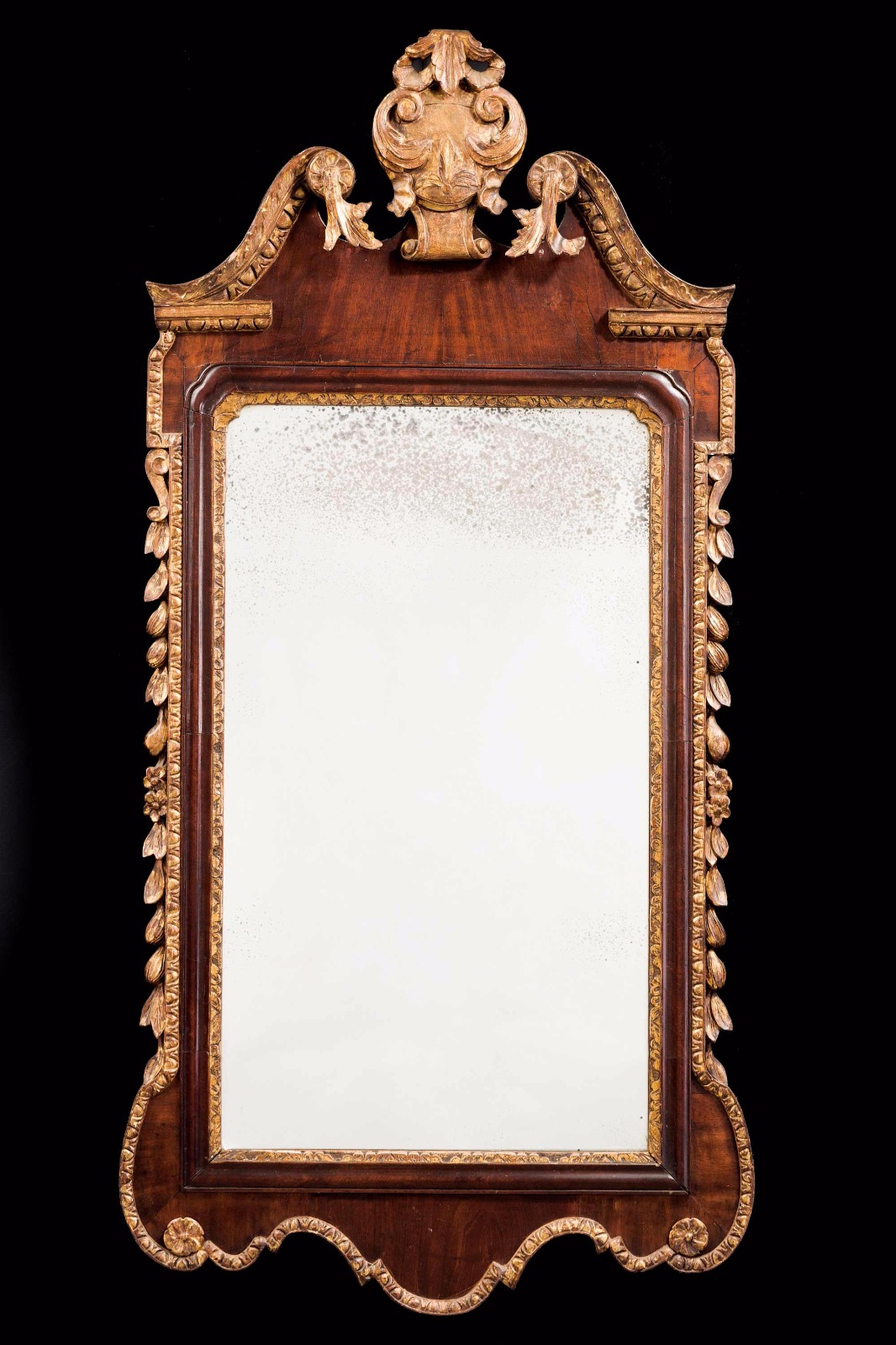 George II Period Walnut and Parcel Gilt Mirror