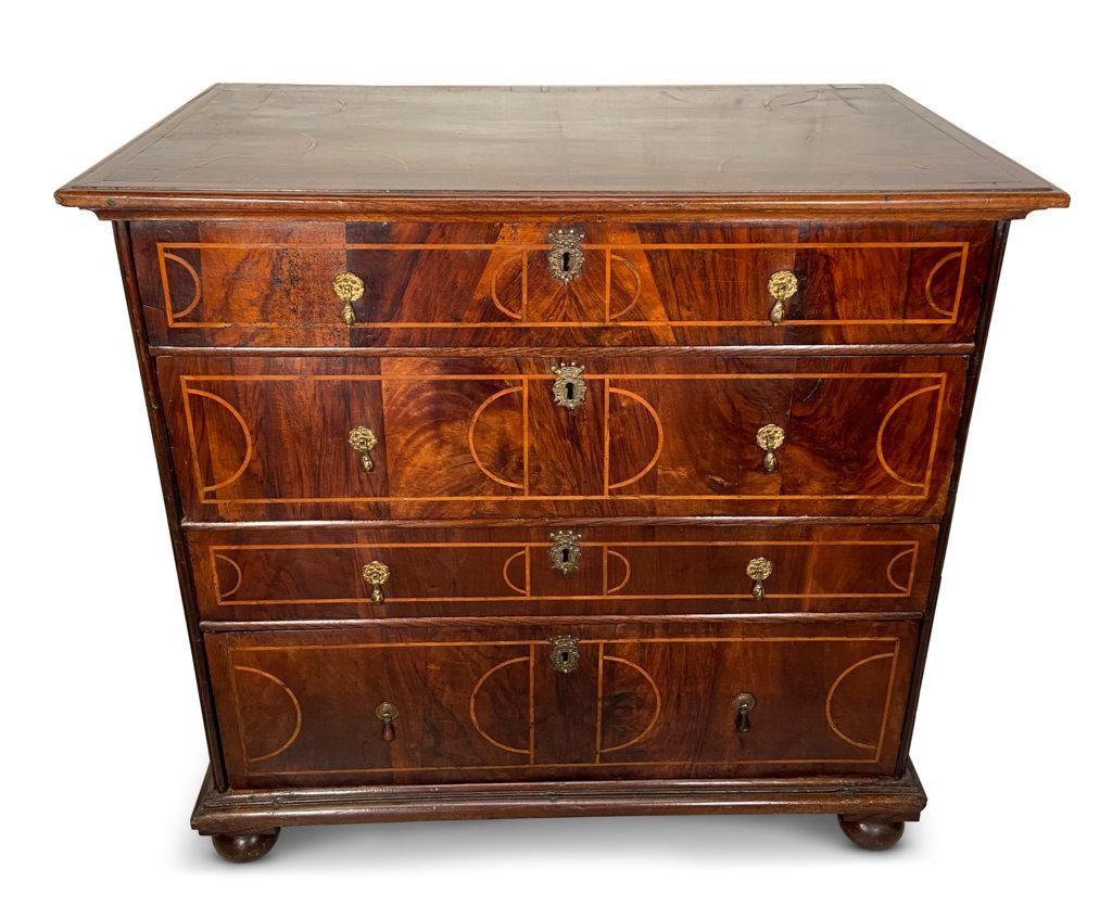 George II Rosewood and Mahogany Inlaid Chest of Four Drawers