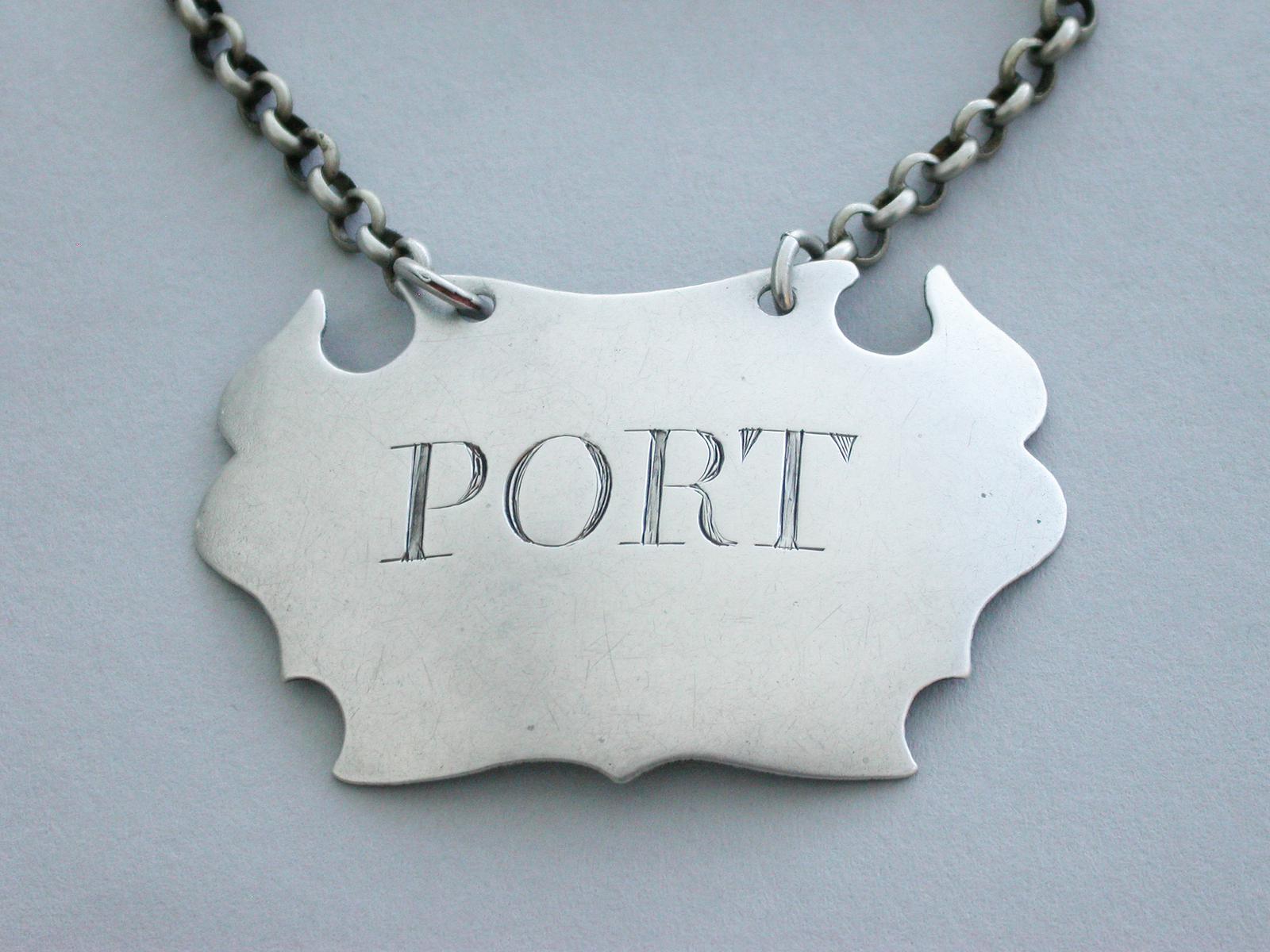George II Silver Plain Escutcheon Wine Label Port by John Harvey I, London c.1739-1750