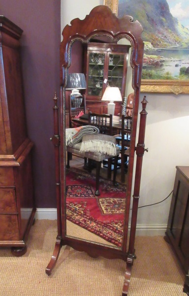 George II Style Antique Walnut Cheval Mirror
