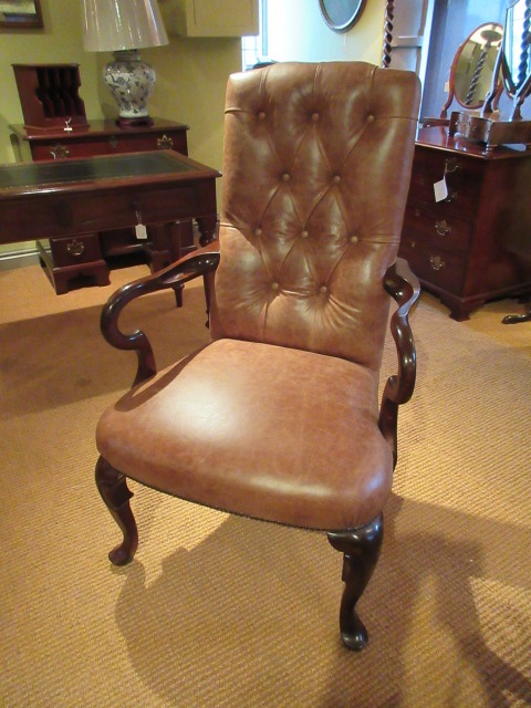 George II Style Mahogany Framed Leather Armchair