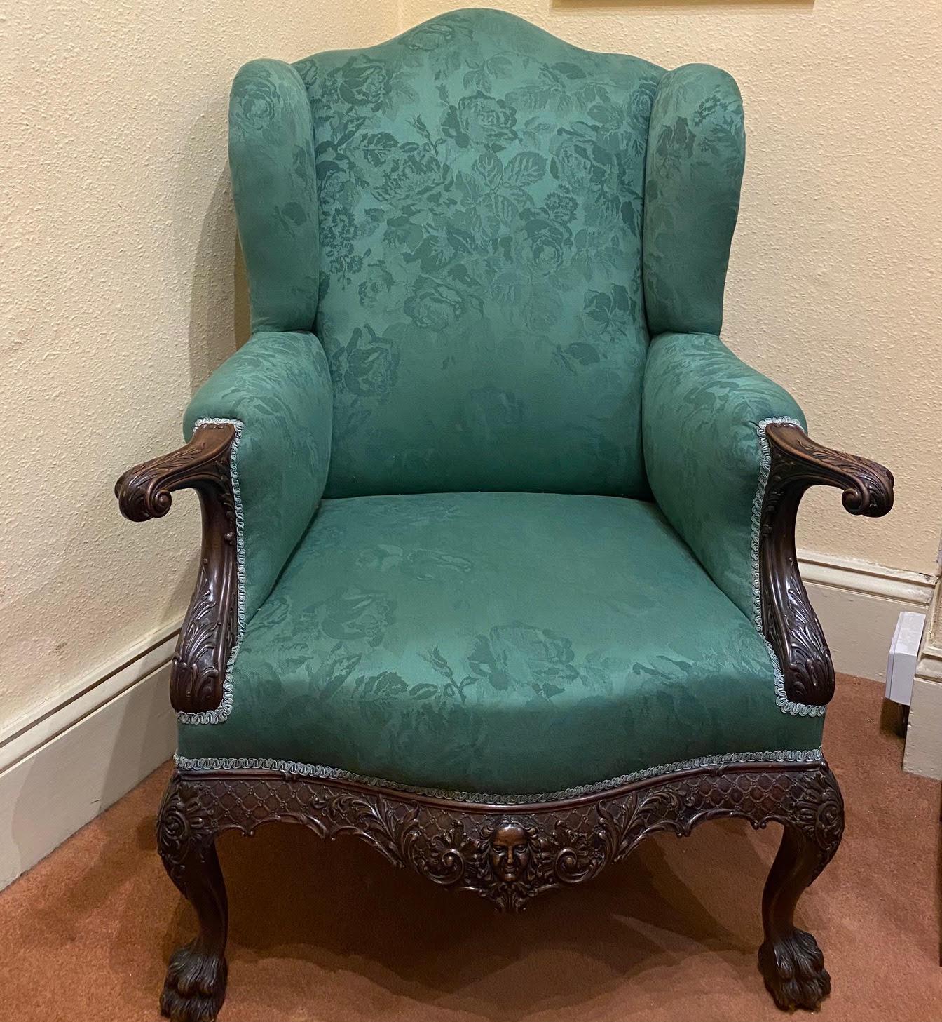 George II Style Solid Mahogany Ornately Carved Wing Armchair