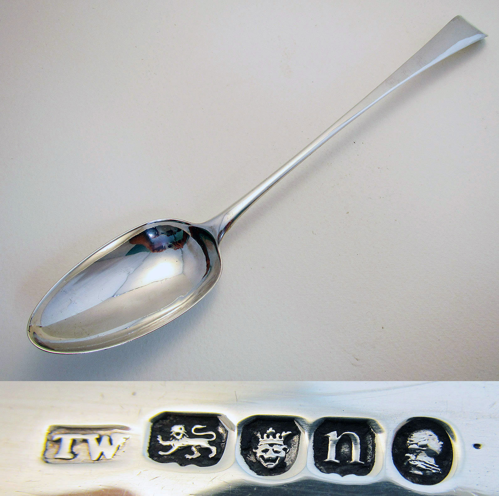 George III 12" Long, Solid Sterling Silver English Antique Basting Gravy Stuffing Spoon, 18th Century. Thomas Wallis 1788