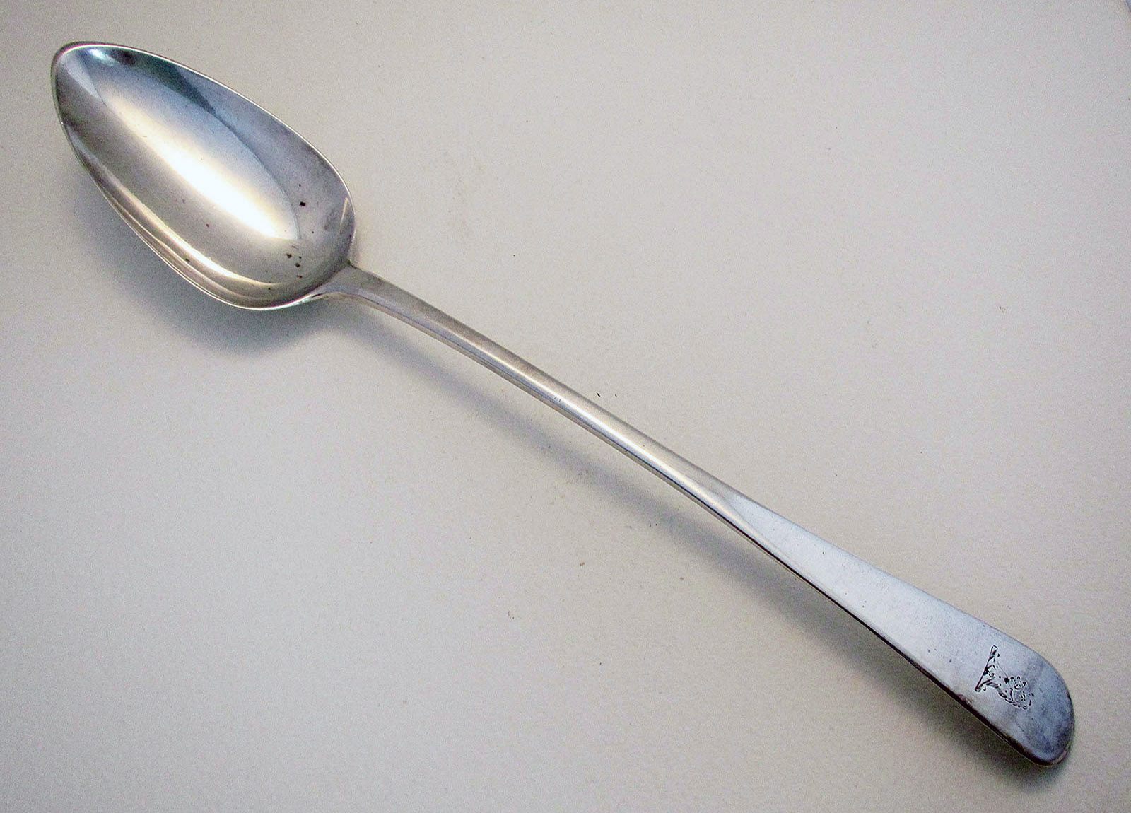 George III 12' Long, Solid Sterling Silver English Antique Basting Gravy Stuffing Spoon, George Smith 1798 (1 of 1)