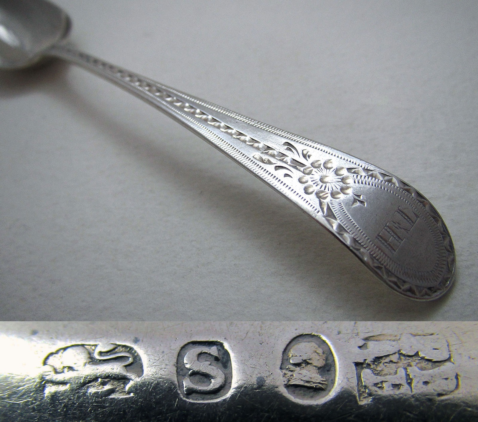 George III 1793 Solid Sterling Silver Antique Tea Spoon, Bright-Cut, 18th Century English Hallmarked. Peter & Ann Bateman
