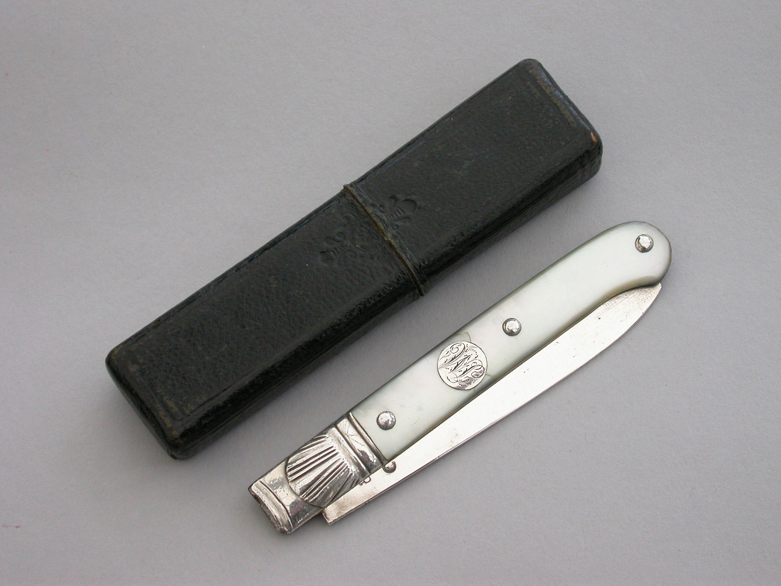 George III 18th Century Cased Silver & Mother of Pearl Folding Fruit Knife, Sheffield c.1785. An Early Example