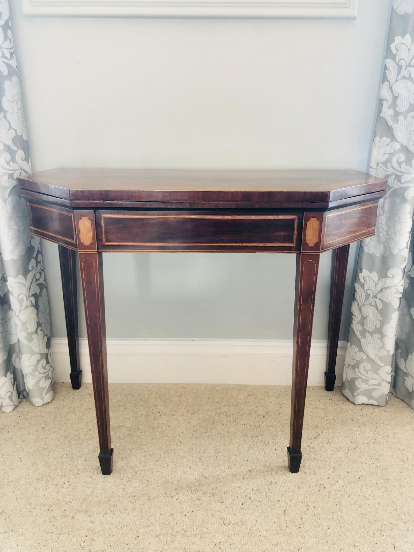 George III 18th Century Mahogany, Satinwood & Tulipwood Banded Fold Over Card Table