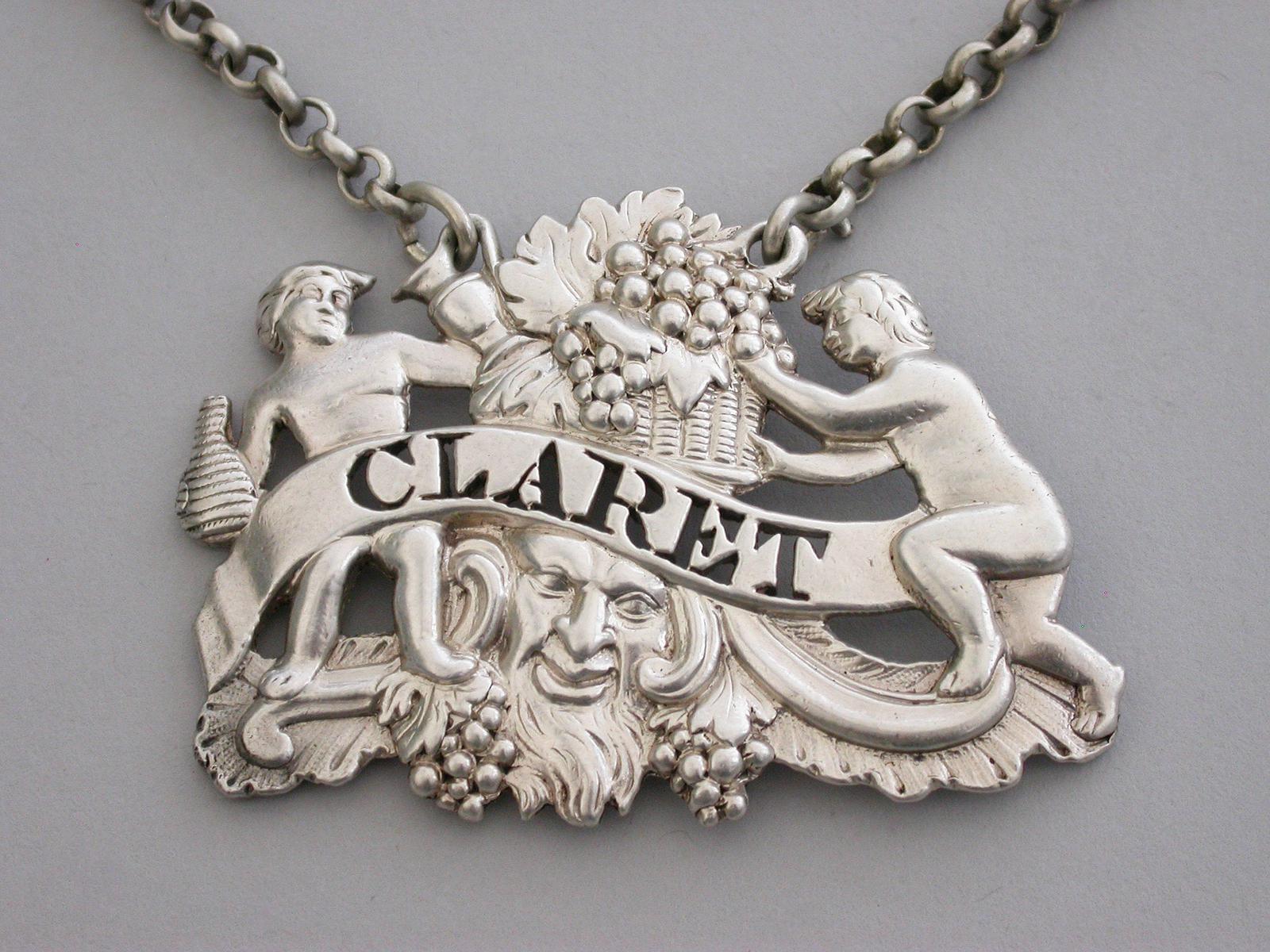 George III Cast Silver Two Putti with Jug & Bottle Wine Label 'Claret' - London, 1809
