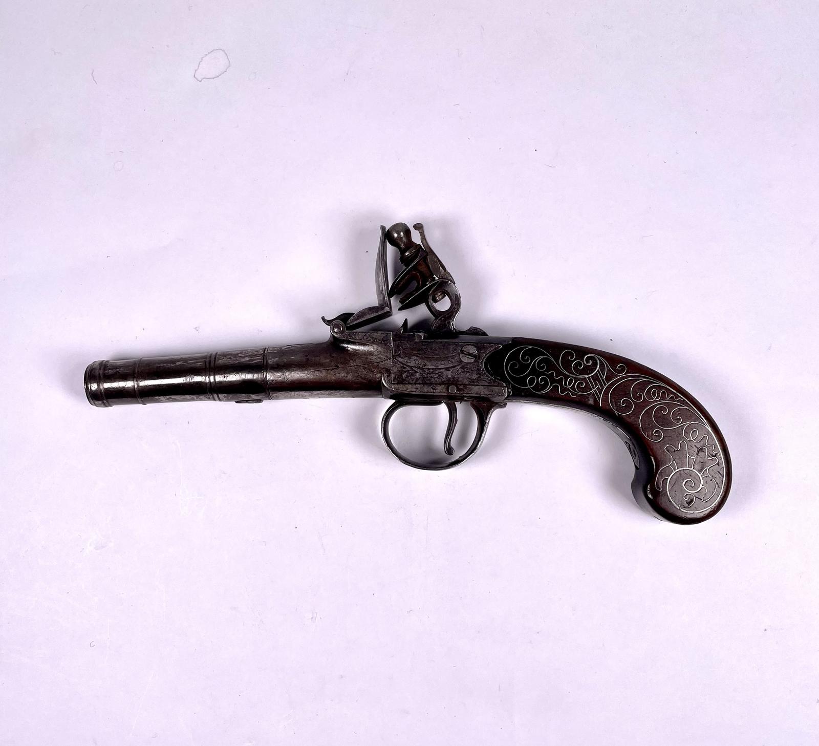 George III Flintlock Pocket Pistol with Silver Inlaid Handle