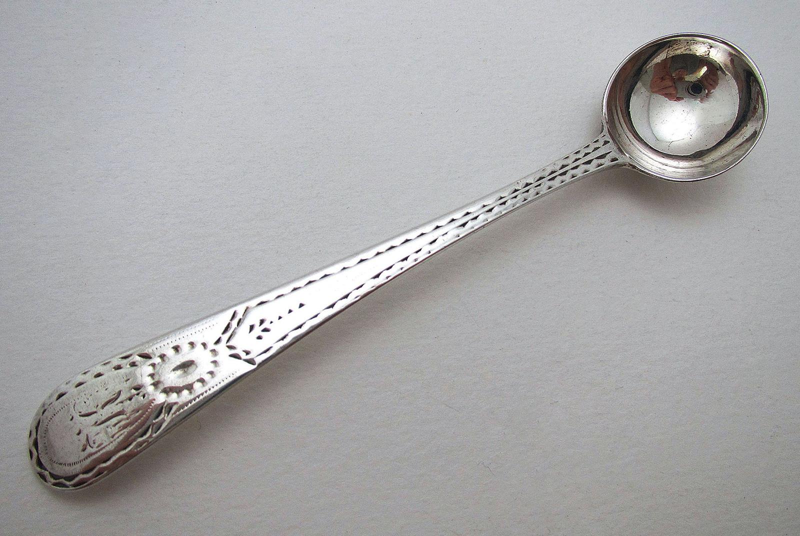 George III Georgian 1787 Sterling Silver Bright Brite Cut Salt Mustard Pot Spoon