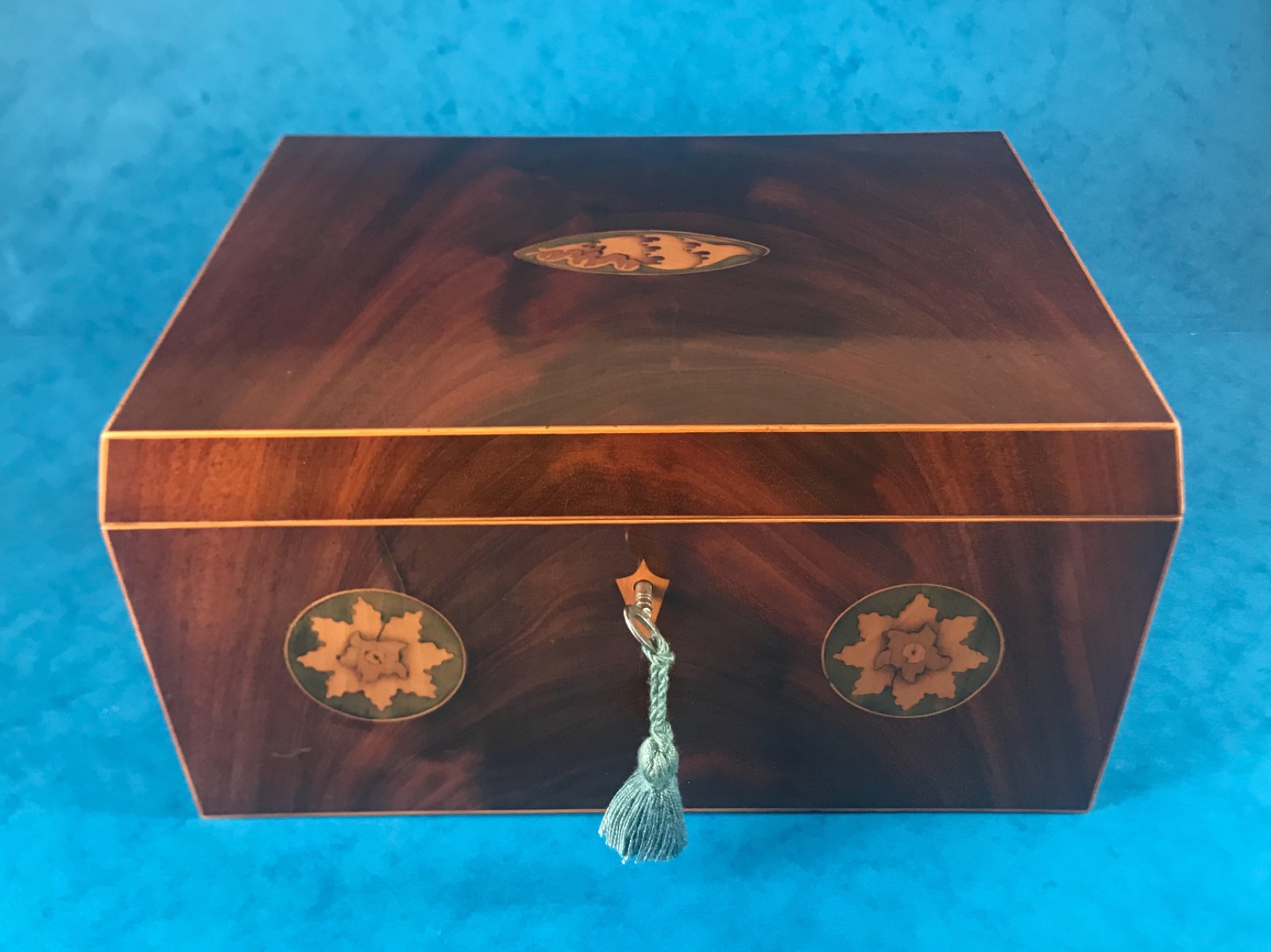 George III Harewood Inlaid Mahogany Jewellery Box c.1810