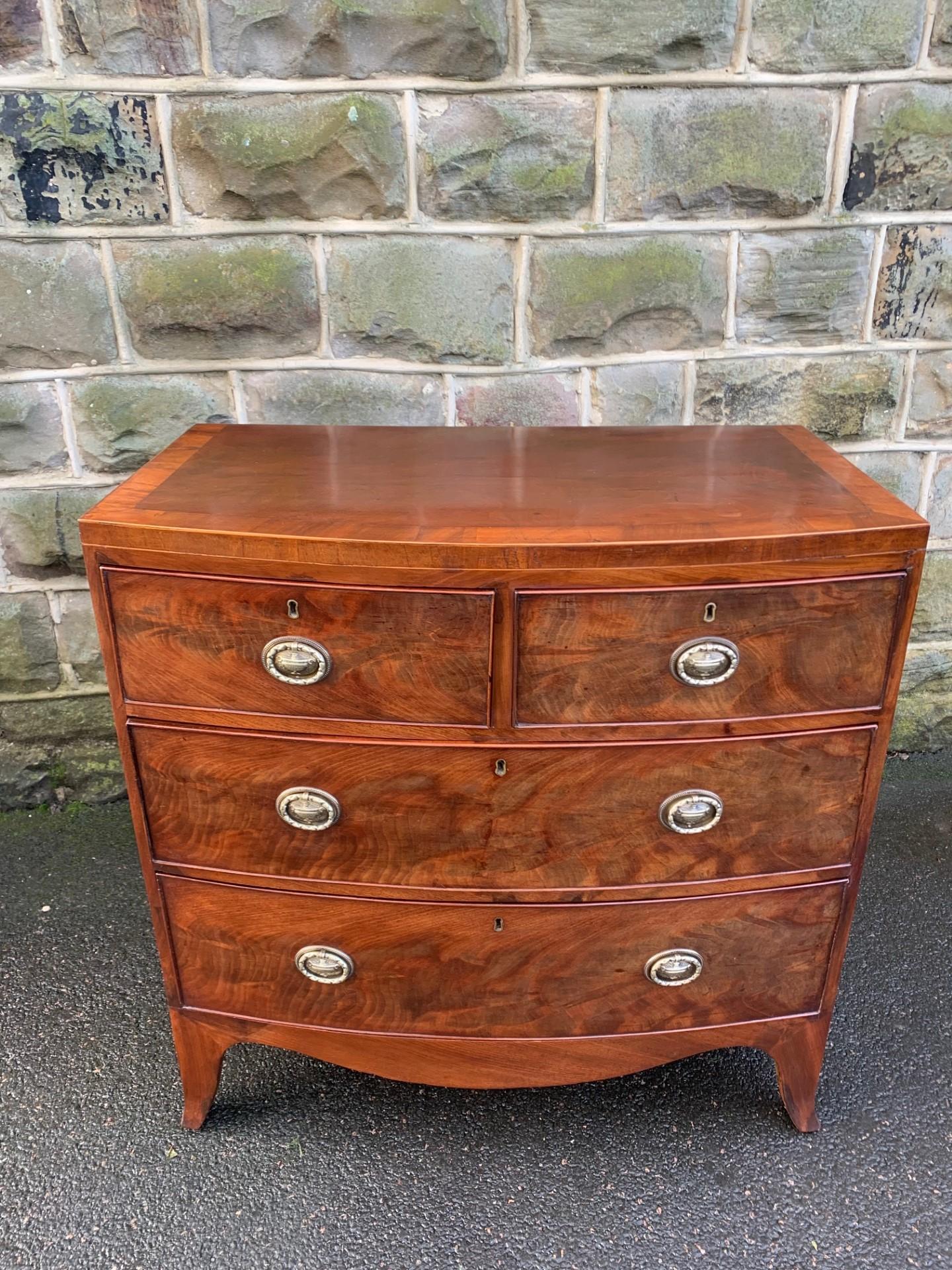 George III Inlaid Mahogany Bow Front Chest of 3 Drawers