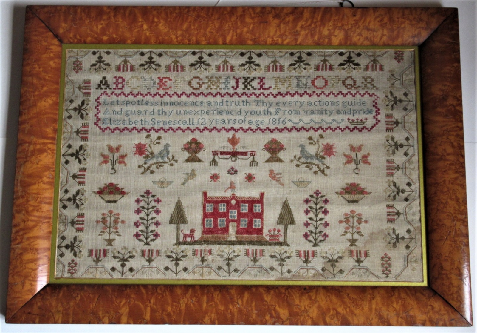 George III Linen Sampler, Elizabeth Senescall 1816 in Period Frame