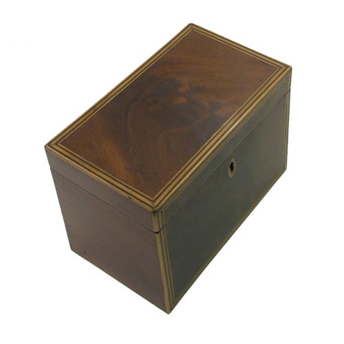 George III Mahogany & Boxwood Inlaid Tea Caddy c.1820 (1 of 1)