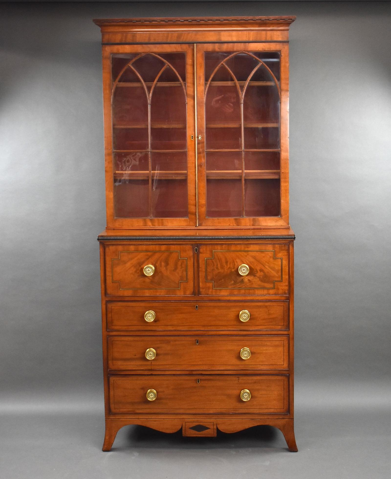 George III Mahogany Brass Inlaid Secretaire Bookcase