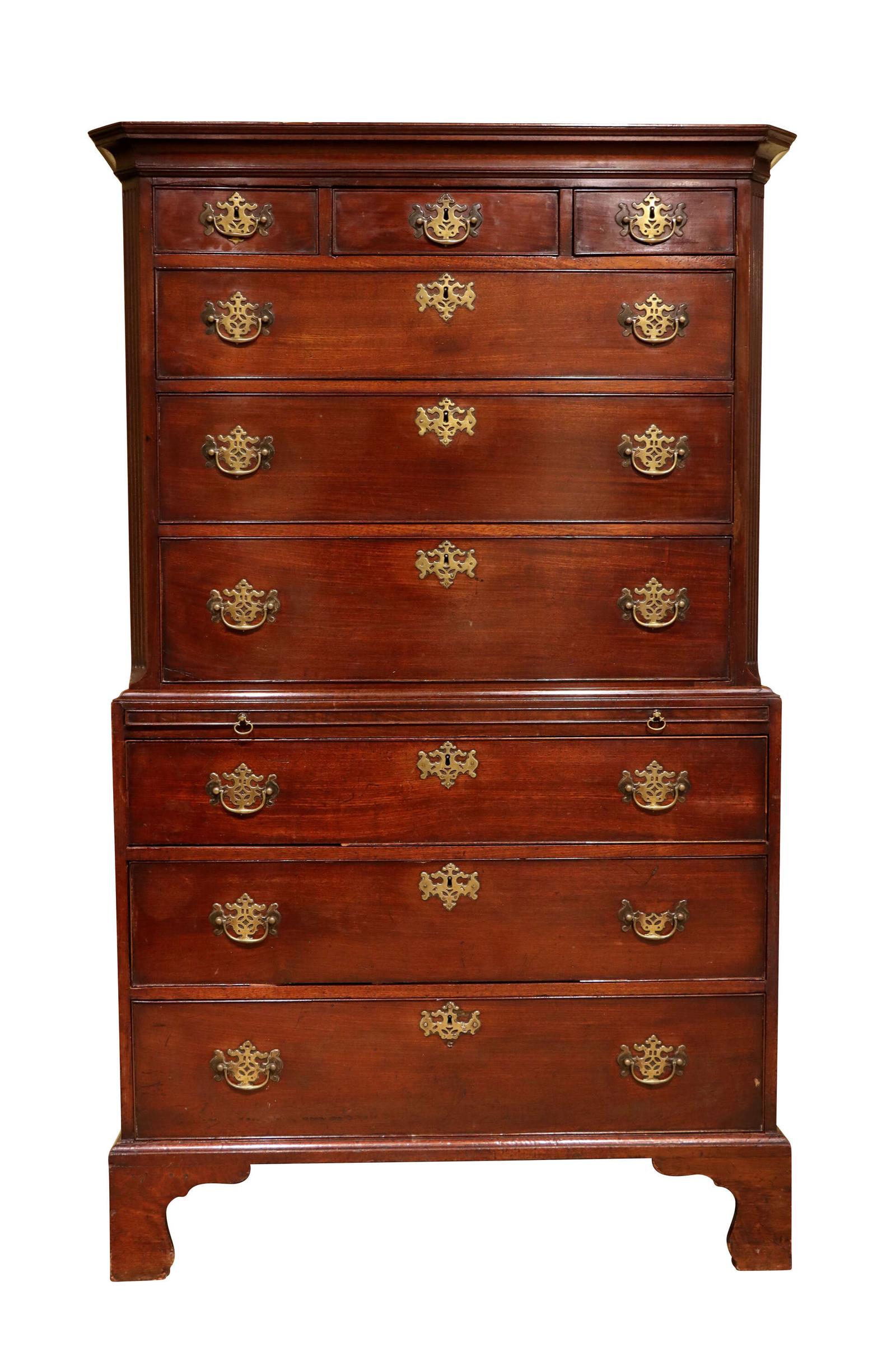 George III Mahogany Chest on Chest with Original Pierced Brasses, Circa 1770