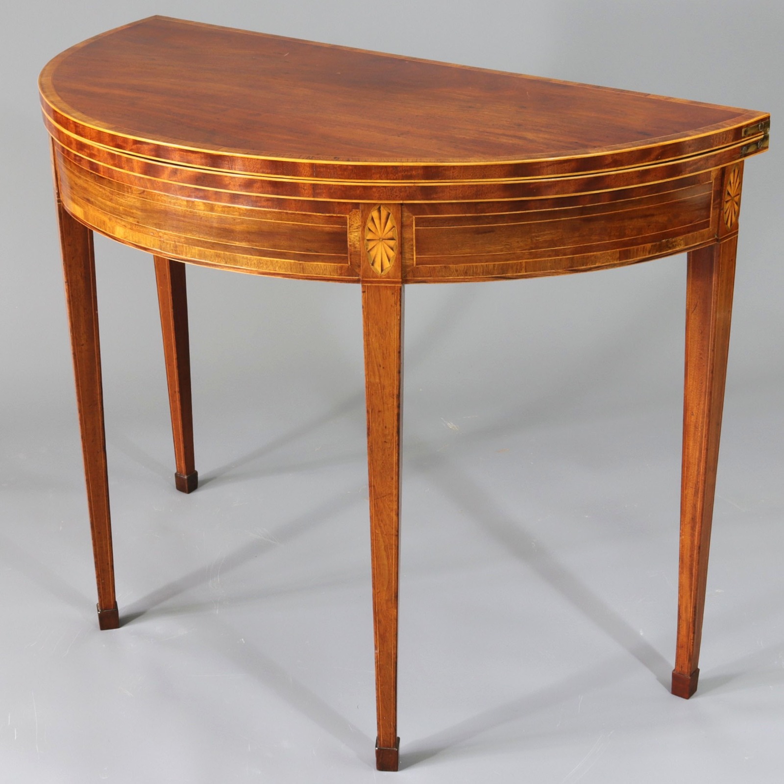 George III Mahogany Demi-Lune Card Table in the Sheraton Style C.1790