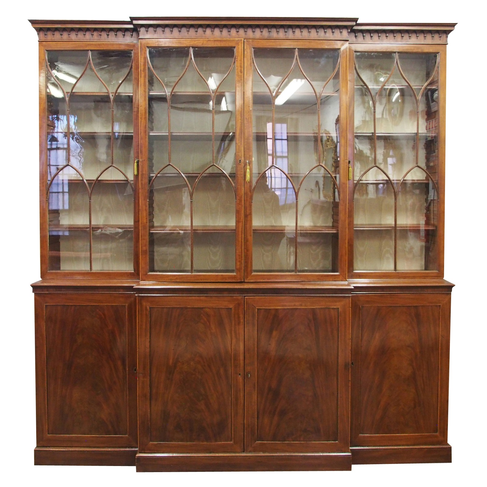 George III Mahogany & Inlaid 4 Door Breakfront Bookcase