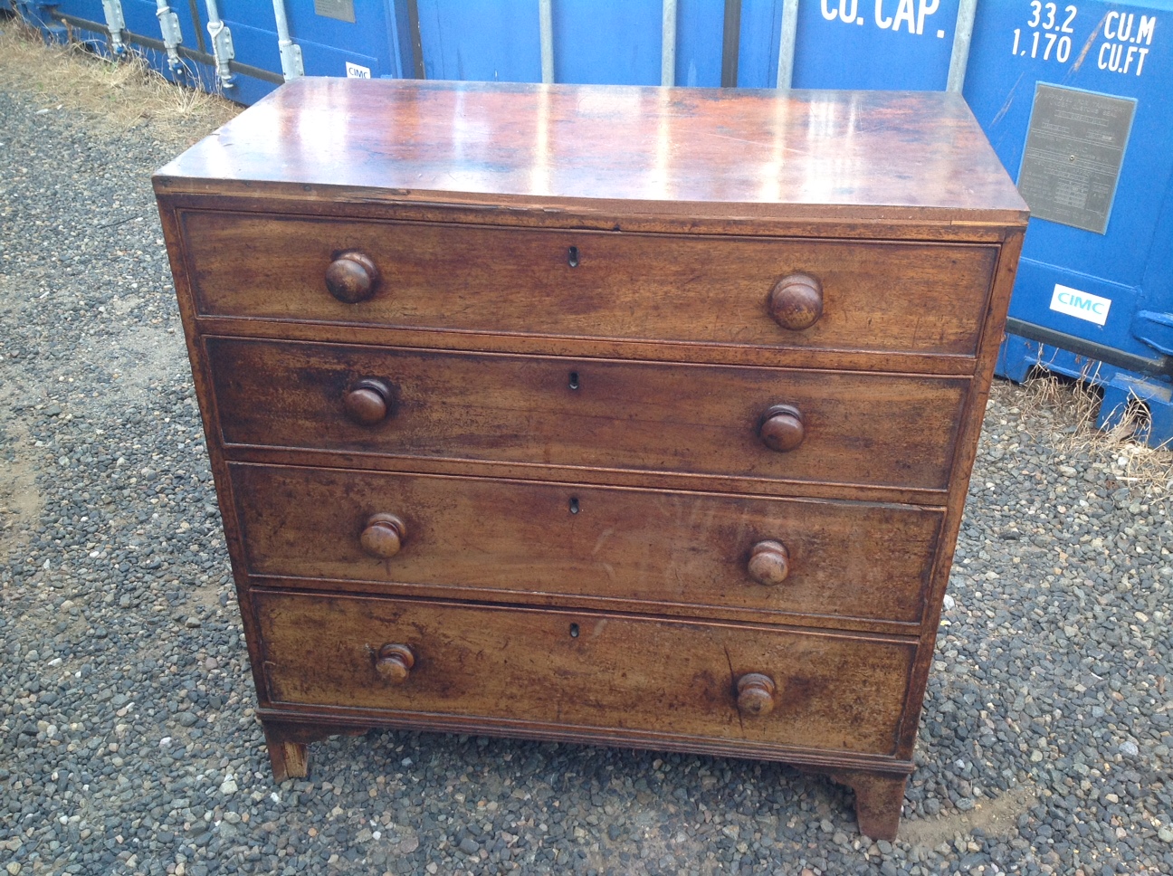 George III Mahogany & Pine Sided Country Rustic Chest of 4 Identical Drawers with Bun Handles and Bracket Feet