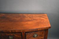 An elegant George III bowfront sideboard dating to the late 18th century, showcasing the refined lines and symmetry of the Georgian period. Constructed in richly figured mahogany with excellent colour and patina, this timeless piece offers graceful proportions and useful storage for dining or reception rooms.