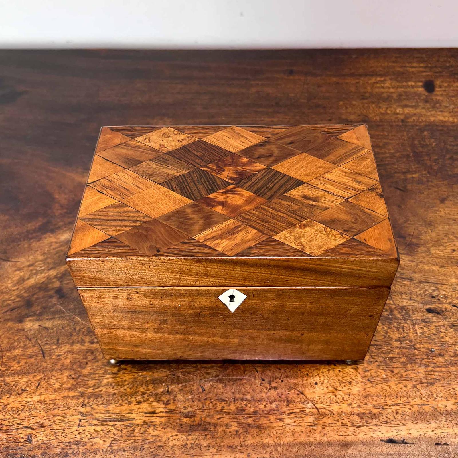 George III Mahogany Tea Caddy with Marquetry Lid (1 of 11)