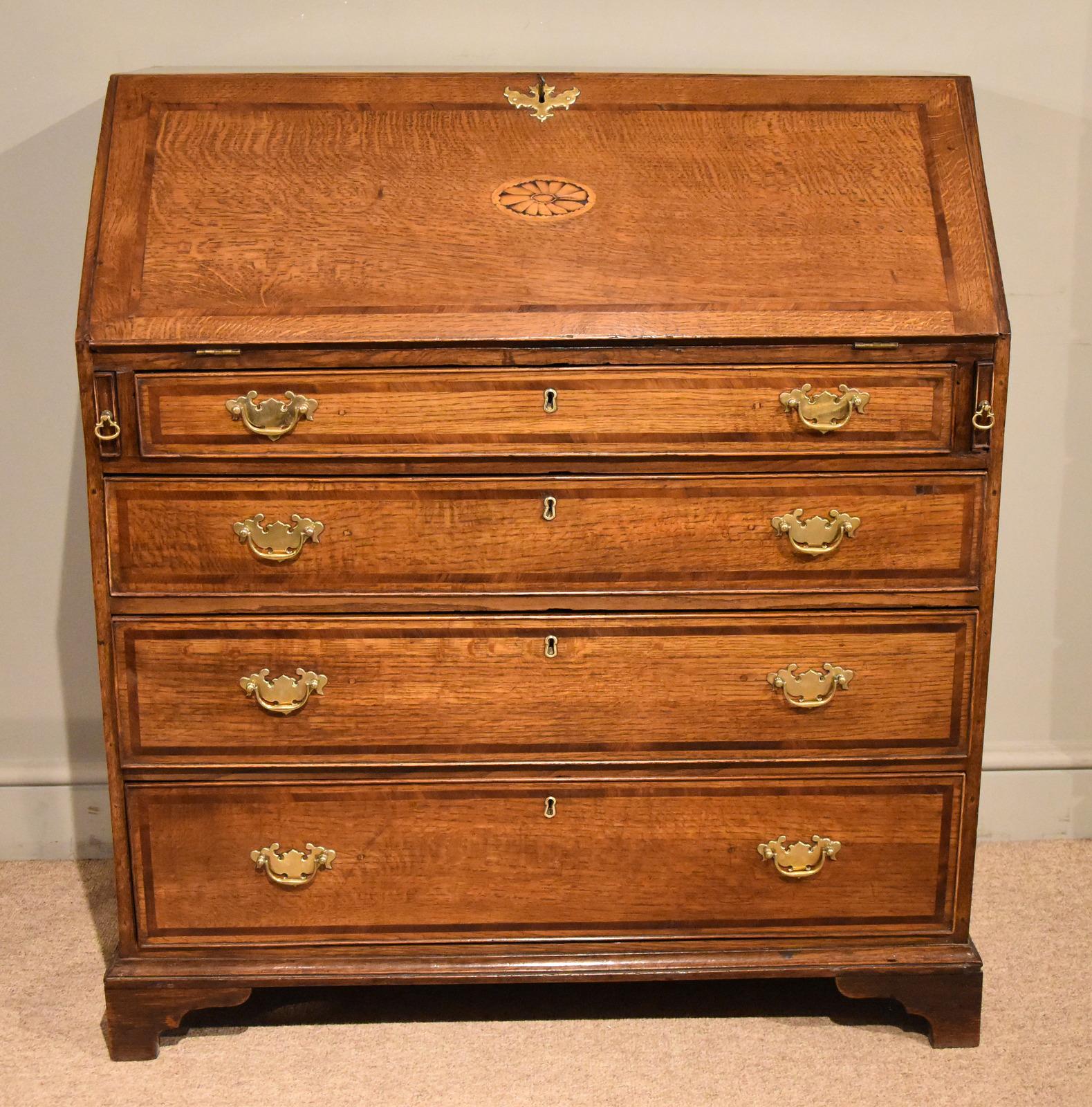 George III Oak Bureau with Fitted Interior