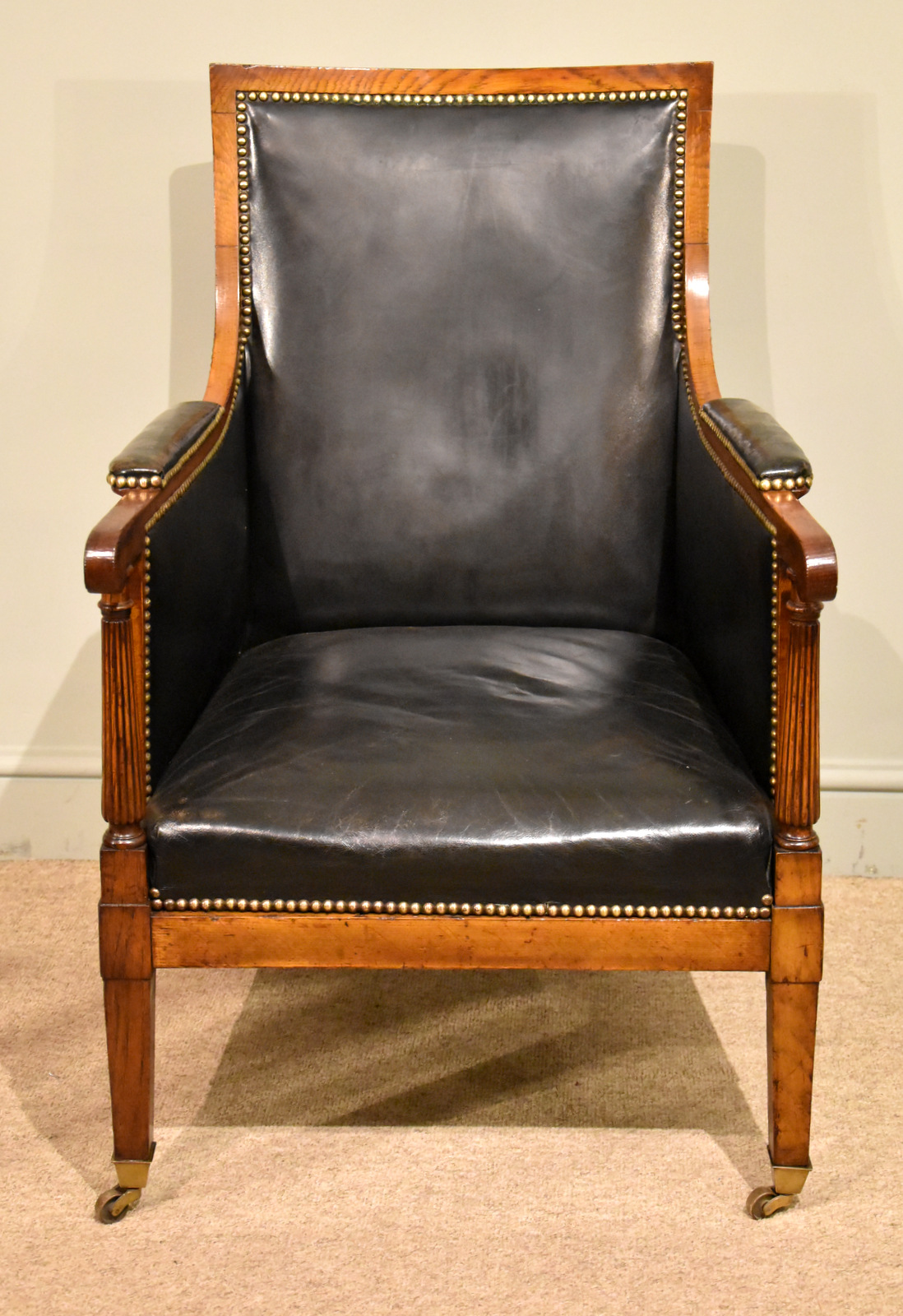 George III Oak Library Chair in Black Hide