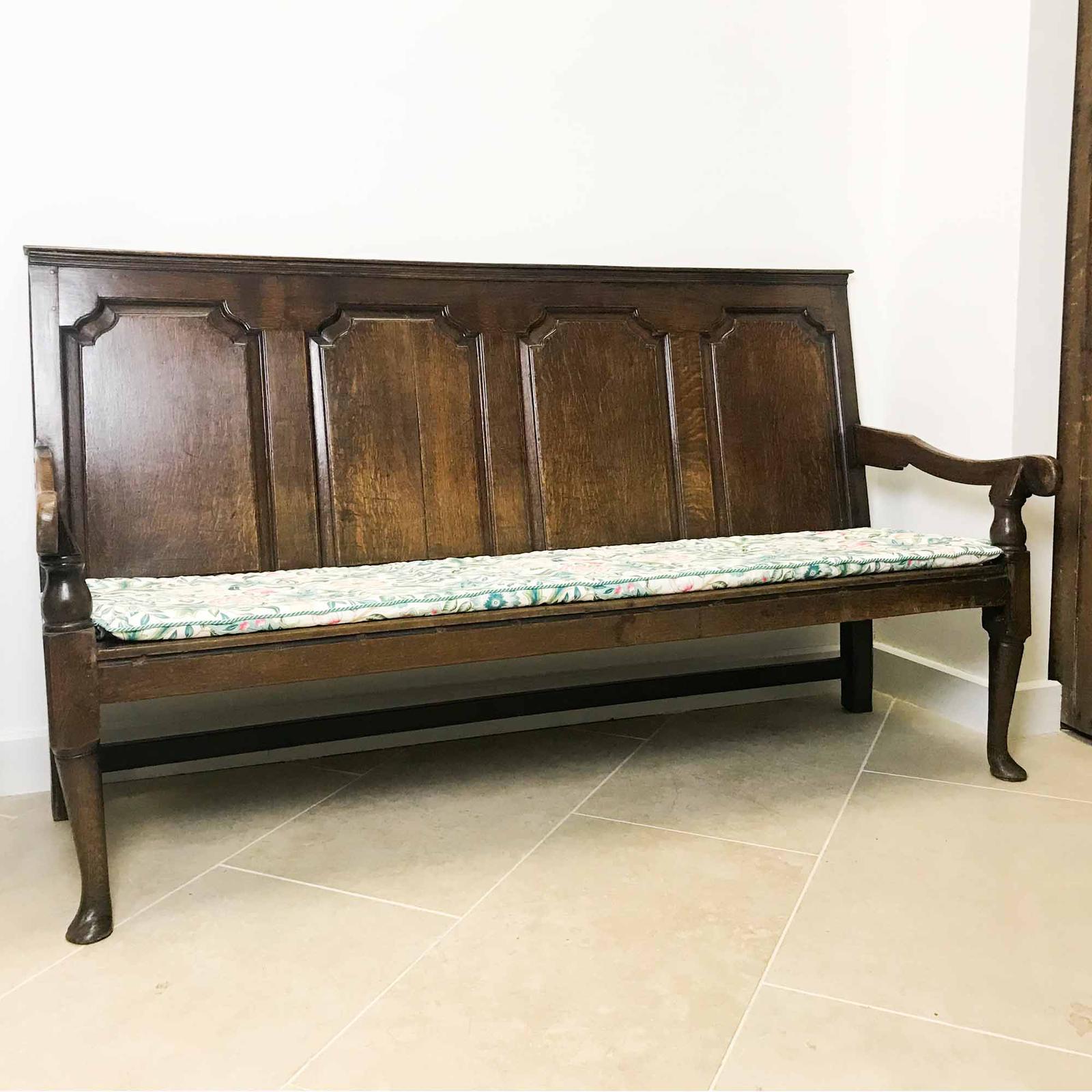 George III Oak Settle with Upholstered Seat Pad c.1770