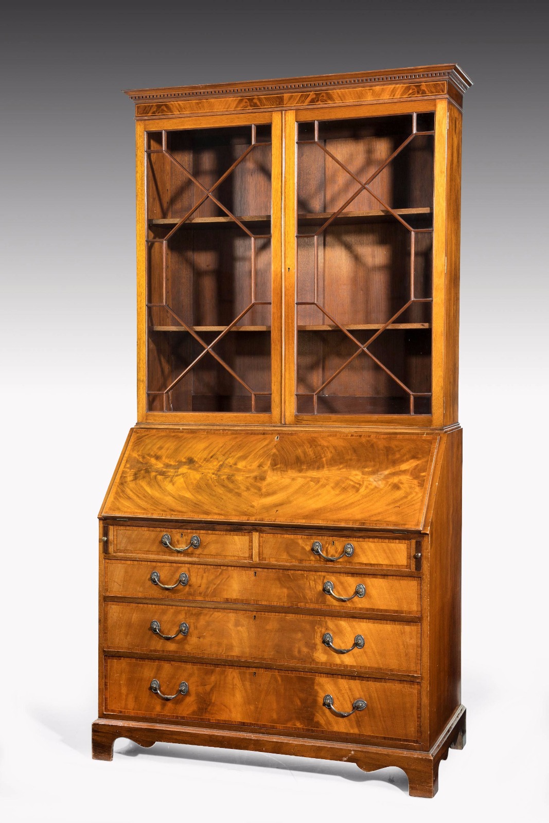 George III Period Mahogany Bureau Bookcase with Finely Matched Timbers