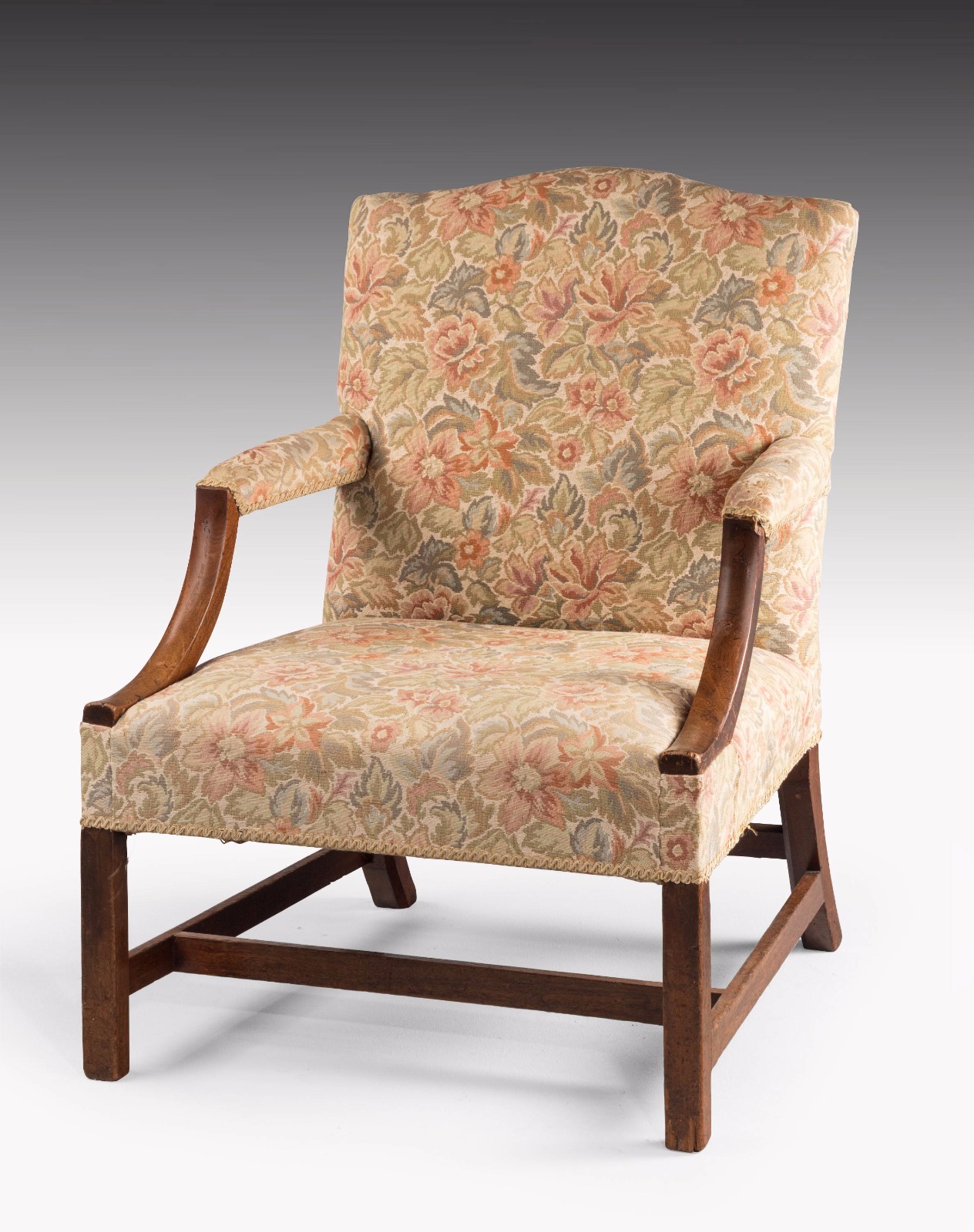 George III Period Mahogany Gainsborough Armchair with Strong Square Supports
