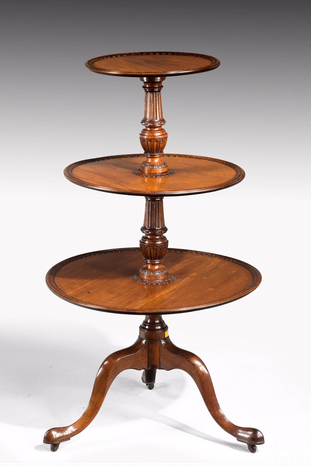 George III Period Mahogany Three Tier Dumbwaiter with Carved Detail to the Edges
