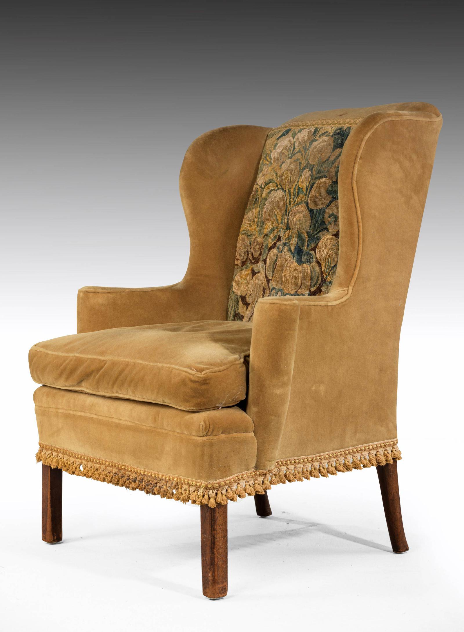 George III Period Wing Chair Incorporating a Verdure Tapestry Panel