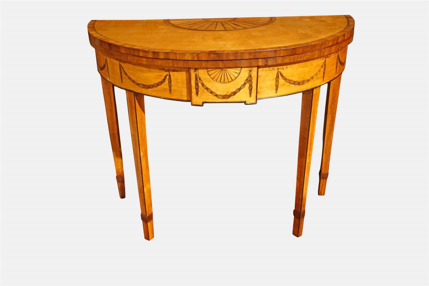 George III Satinwood Demi-Lune Card Table