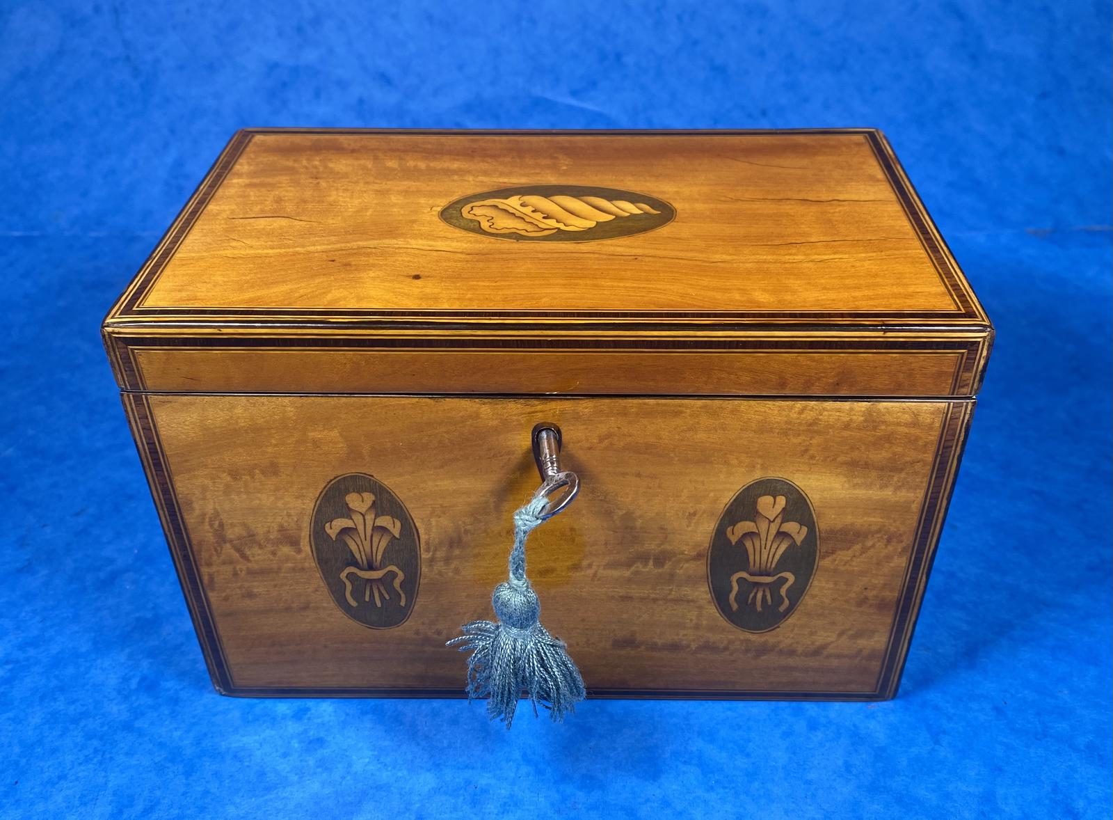 George III Satinwood Twin Tea Caddy with Prince of Wales Inlay