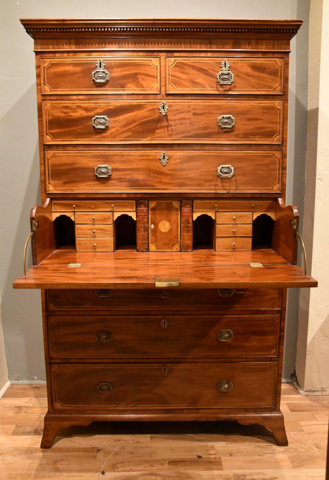 George III Sheraton Design Secretaire Mahogany Chest on Chest