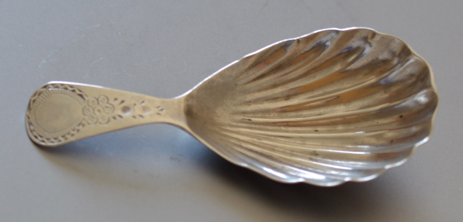 George III Silver Bright Cut Engraved Caddy Spoon, London 1790