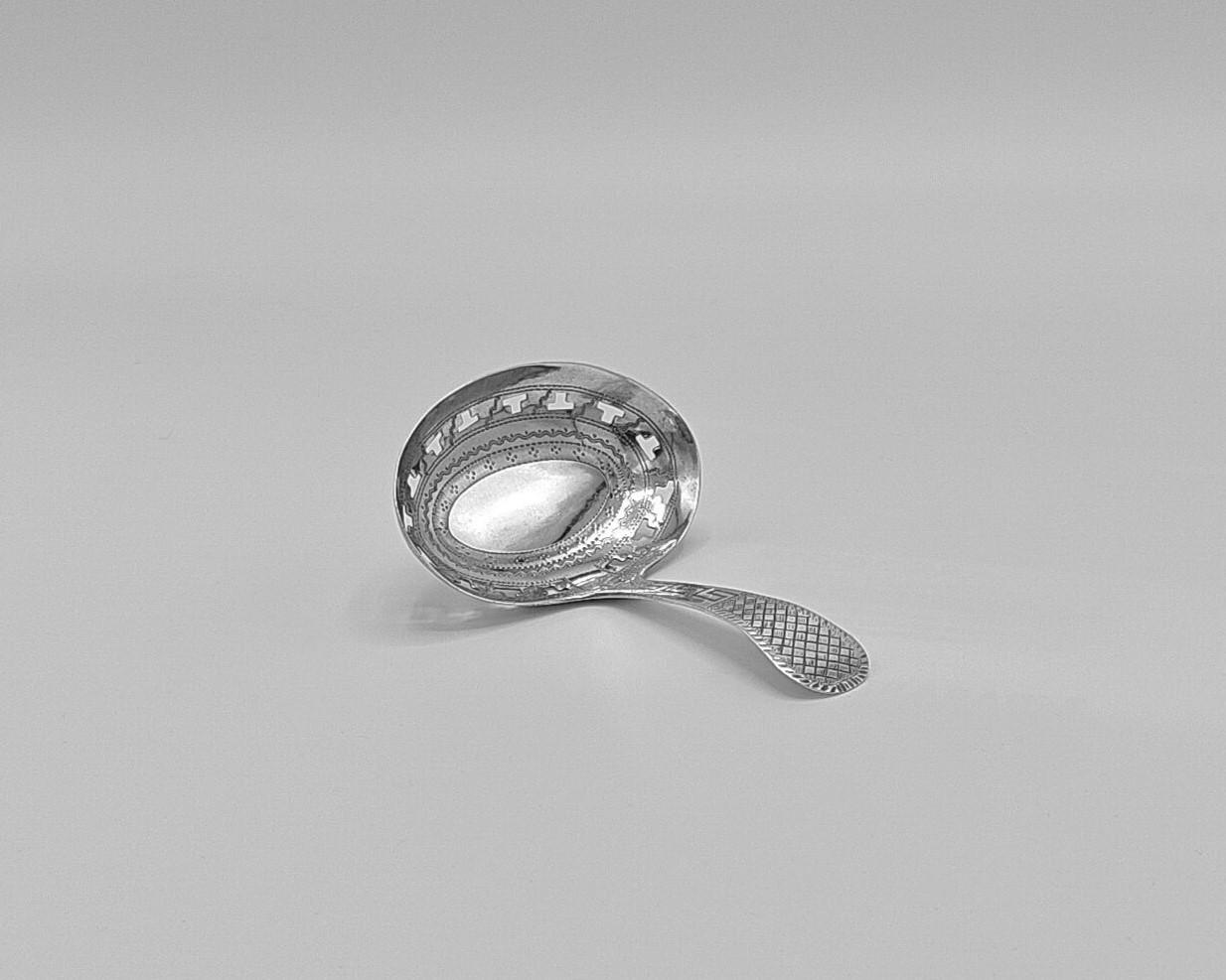 George III Silver Caddy Spoon with Pierced Bowl by Joseph Taylor, Birmingham 1807