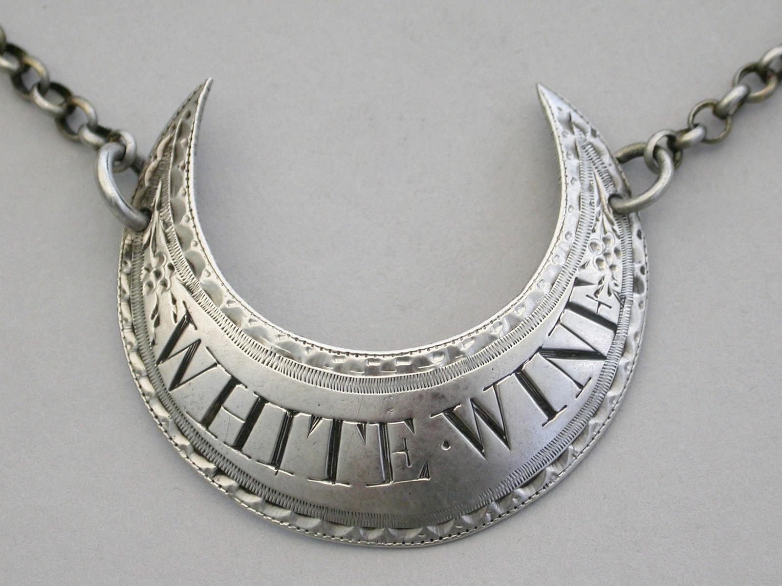 George III Silver Crescent Wine Label 'White Wine' by Phipps & Robinson, London c.1790