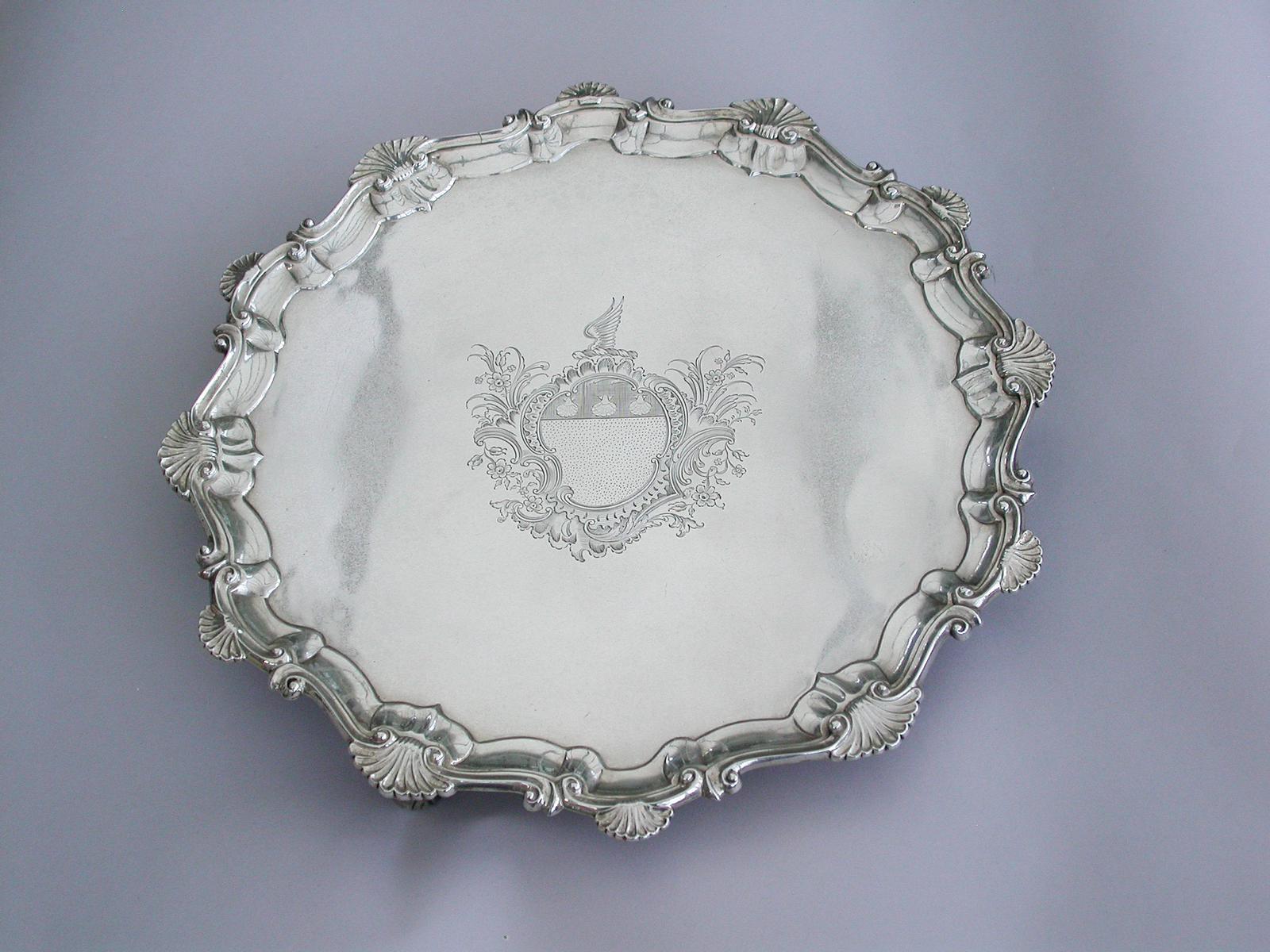 George III Silver Salver Arms of Graham of Esk by Ebenezer Coker, London 1762
