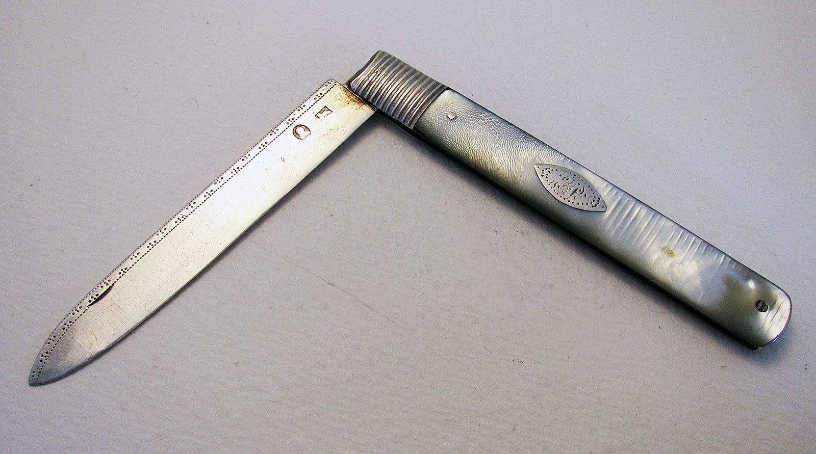 George III Solid Sterling Silver & Mother of Pearl Mop Antique English Sheffield Hallmarked Folding Pocket Fruit Penknife C.1800