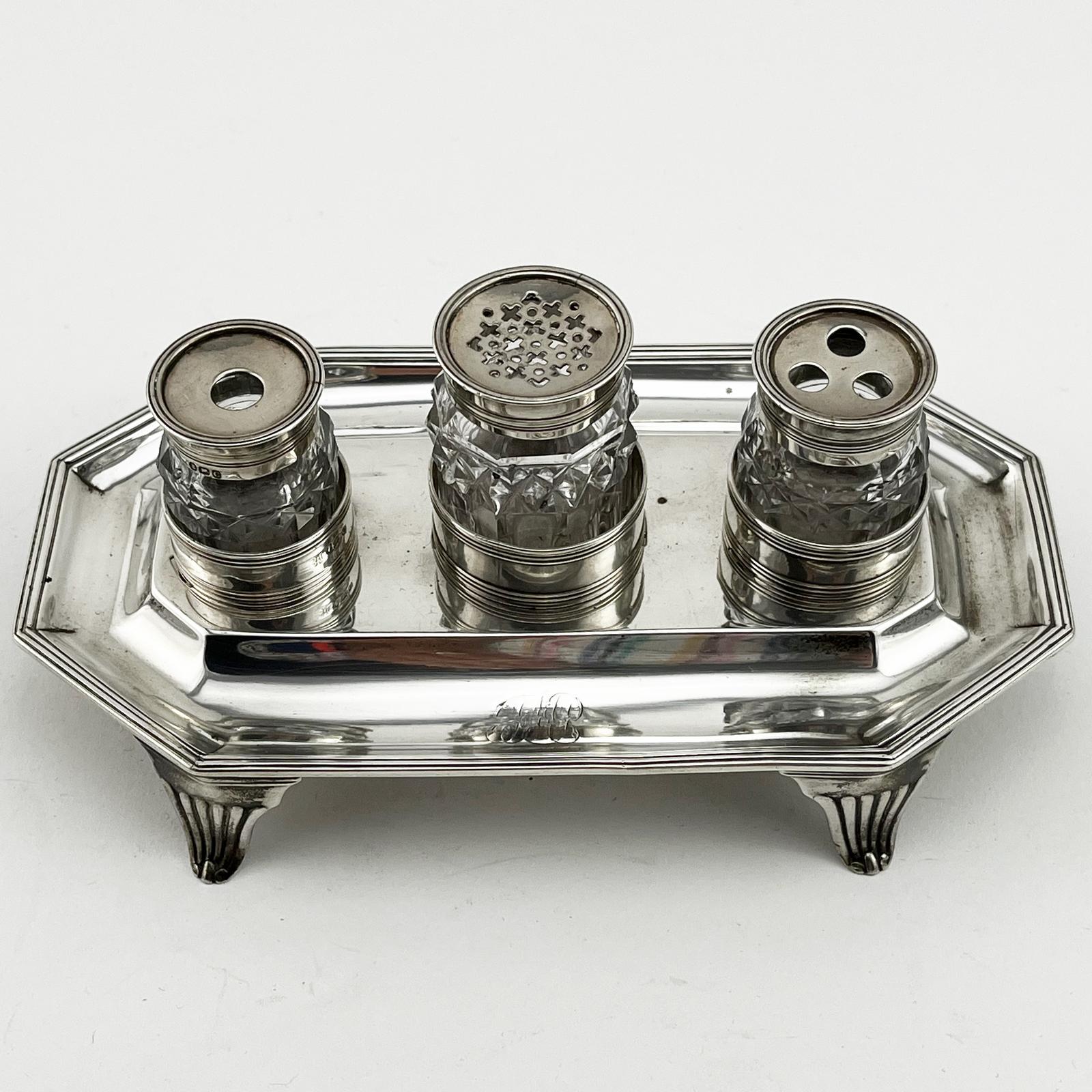 George III Sterling Silver Inkstand with Three Cut Glass Bottles (1 of 5)